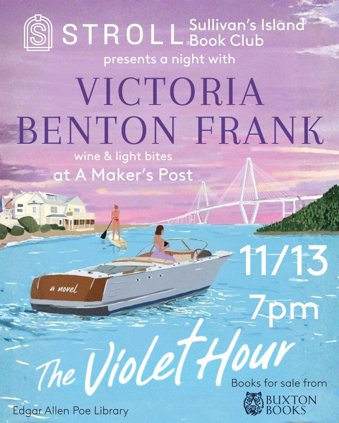 Stroll Sullivan’s Island Book Club presents Victoria Benton Frank with her new book The Violet Hour 💜