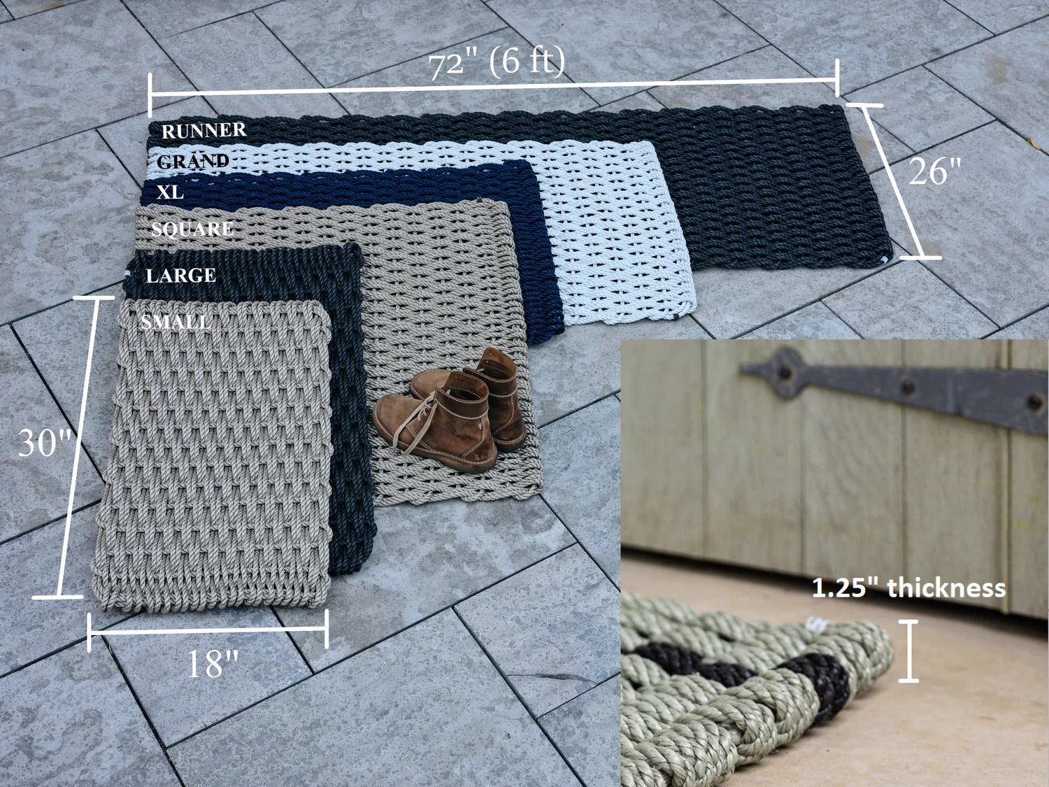 Every doormat is carefully hand-woven in Maine. The doormat will not mold or mildew and care is quite simple. To clean the doormat an occasional shake-out will do. It repels water during rain showers and doesn’t get waterlogged. We hope you feel the heart in our simple, but rugged product as you brush your shoes off and walk inside. It is an honor to greet you and your friends at the front door.