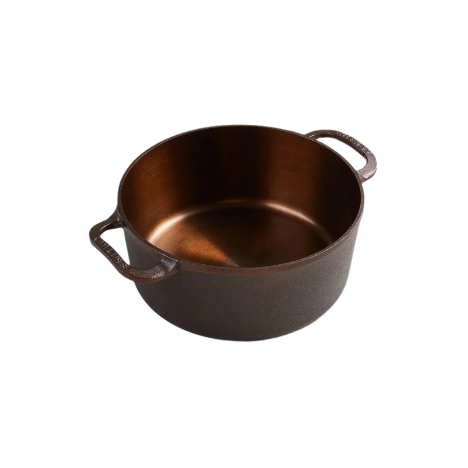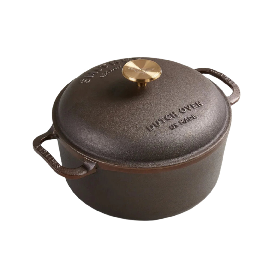 Honoring the best of vintage American Dutch oven design, the 5.5 Qt Dutch Oven is a beautiful and functional kitchen work horse that is destined to be a modern heirloom. It’s the perfect Dutch oven for families of four or for those who love to slow cook and stew. Featuring Smithey’s signature polished interior surface that is naturally non-stick and easy-to-clean, this Dutch oven combines the best of enameled cast iron heat performance with a surface finish that will never crack or chip—in fact, the interior surface will only get better with use and time. Crafted for versatility, we designed the lid of this Dutch oven to work as a custom-fit lid for your No. 10 Traditional Cast Iron Skillet for extra convenience. Use it well.