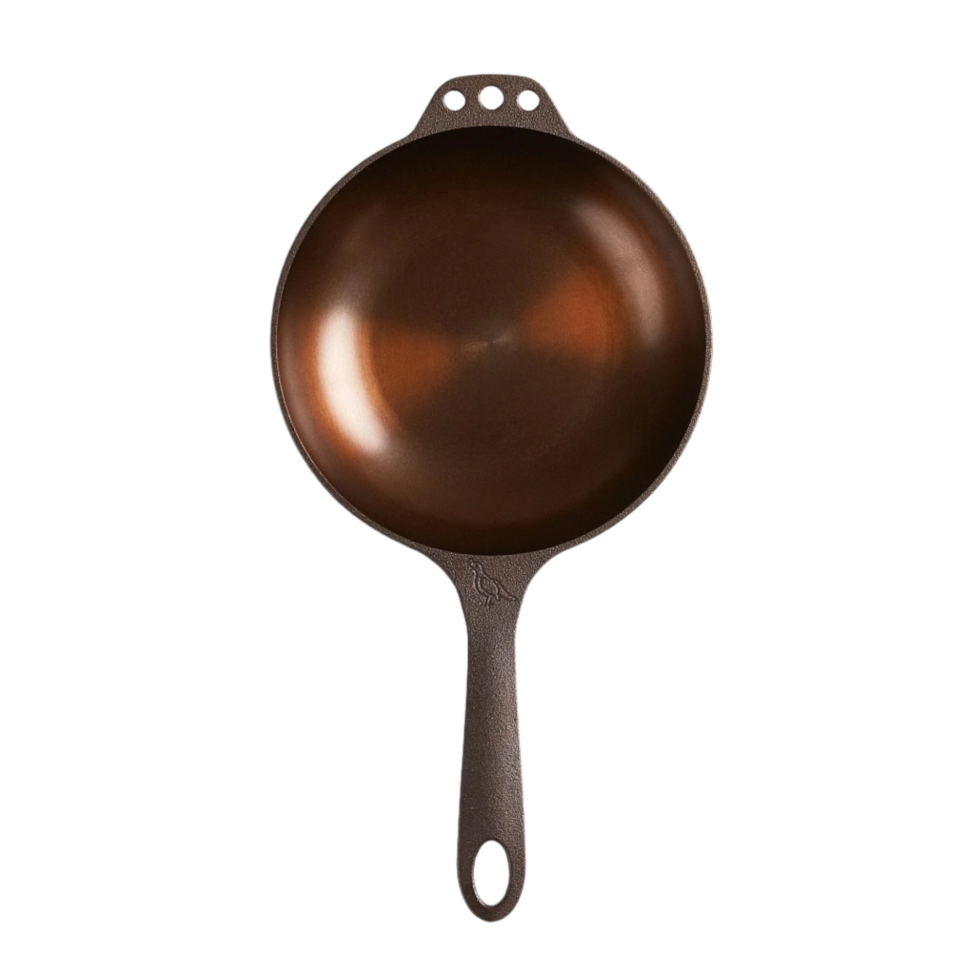 The No. 8 Chef Skillet is designed to be a daily cooking companion. The smaller shape and curved interior sides promote movement and flipping, while the longer handle keeps your hands farther away from heat. Like all Smithey skillets, the interior features a smooth, polished finish that, when seasoned, is naturally non-stick. Use it well!