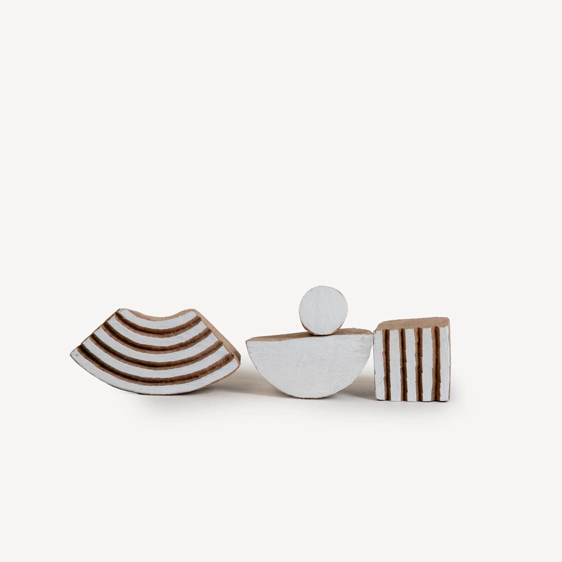 - Four hand carved wooden blocks (Indian Blackberry Wood).