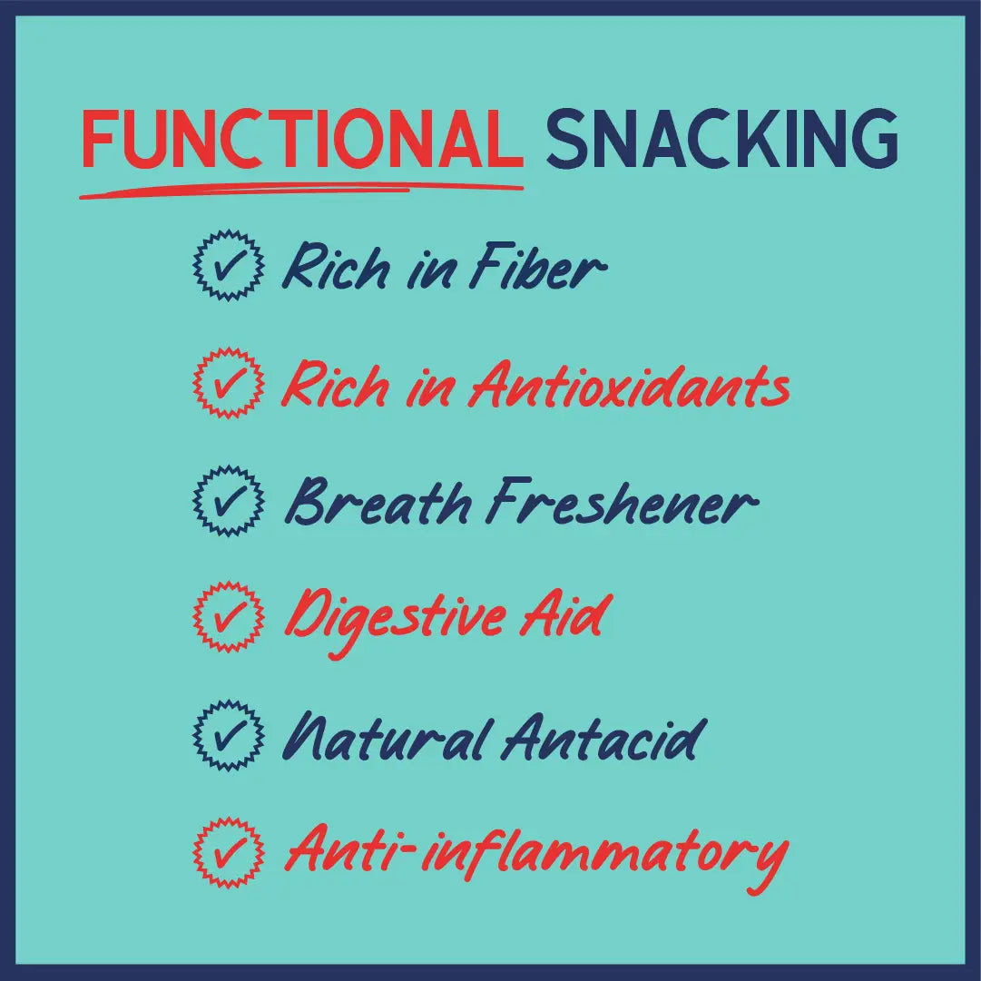 To enjoy, simply chew 1/2 tsp after a meal. This crunchy and delightful mix combines the palette-cleansing flavor of fennel, with notes of citrusy coriander and refreshing peppermint, and light touch of maple syrup which adds a subtle sweetness.