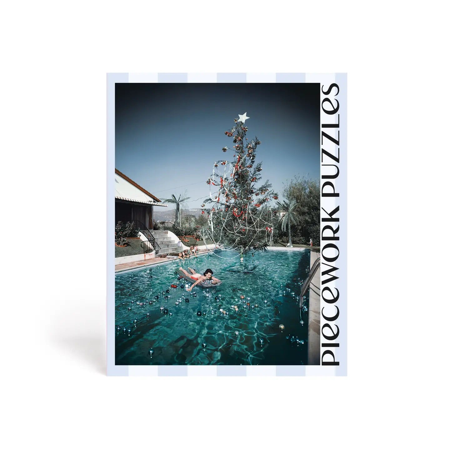 George “Slim” Aarons liked to say his subject was “attractive people doing attractive things in attractive places.” In the case of Christmas Swim, one of Slim’s most iconic holiday shots, that meant his wife Lorita floating about Los Angeles in 1954. With packaging featuring an iconic cabana stripe and an image that will feel festive year-round, Christmas Swim is sure to be a hit.