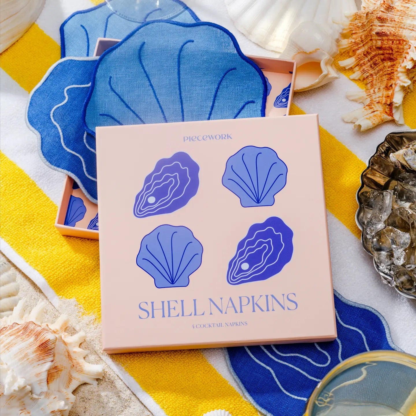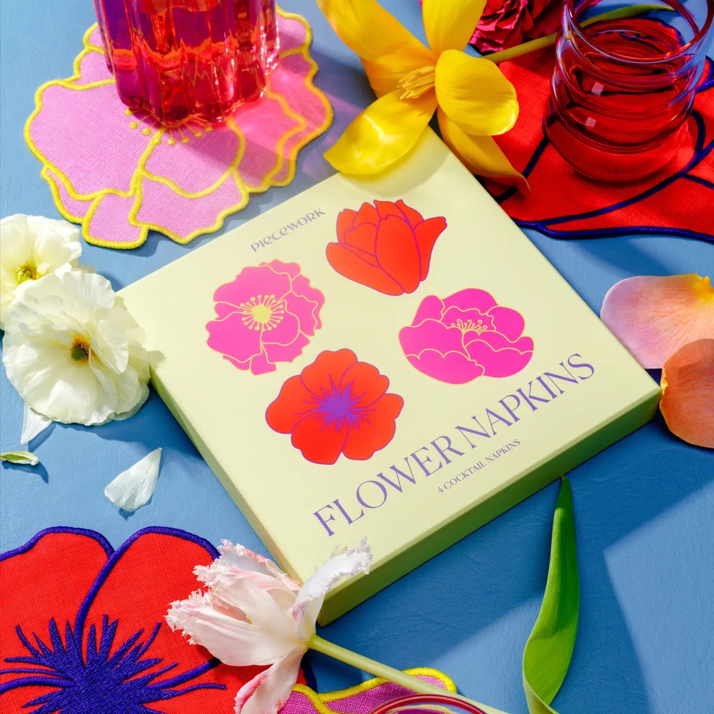 Four 100% linen cocktail napkins featuring various shapes and forms