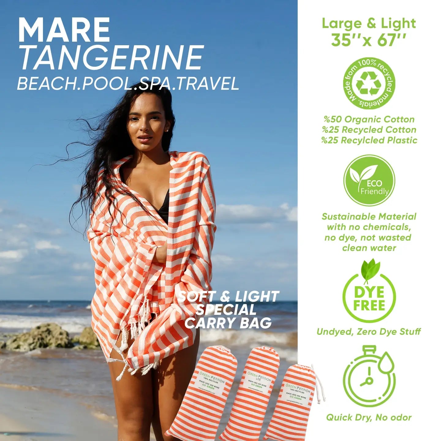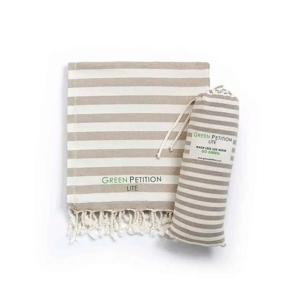 Crafted for sustainability enthusiasts, the Peshtemal is more than a towel—it's a nostalgic journey through time with its striped design. Made from a soft blend of 50% organic cotton, it ensures a luxurious feel, highlighting a commitment to purity and quality. Adding to its eco-friendly profile, 25% of the material comes from recycled plastic bottles, and another 25% from recycled T-shirt waste, promoting environmental responsibility.