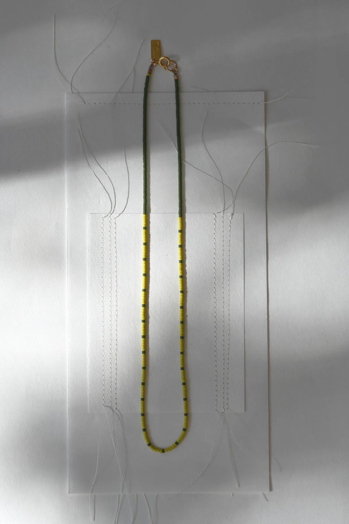 The Dipsea Necklace is composed of a fixed sequence pattern. Designed to pair with any other style or palette within the collection.