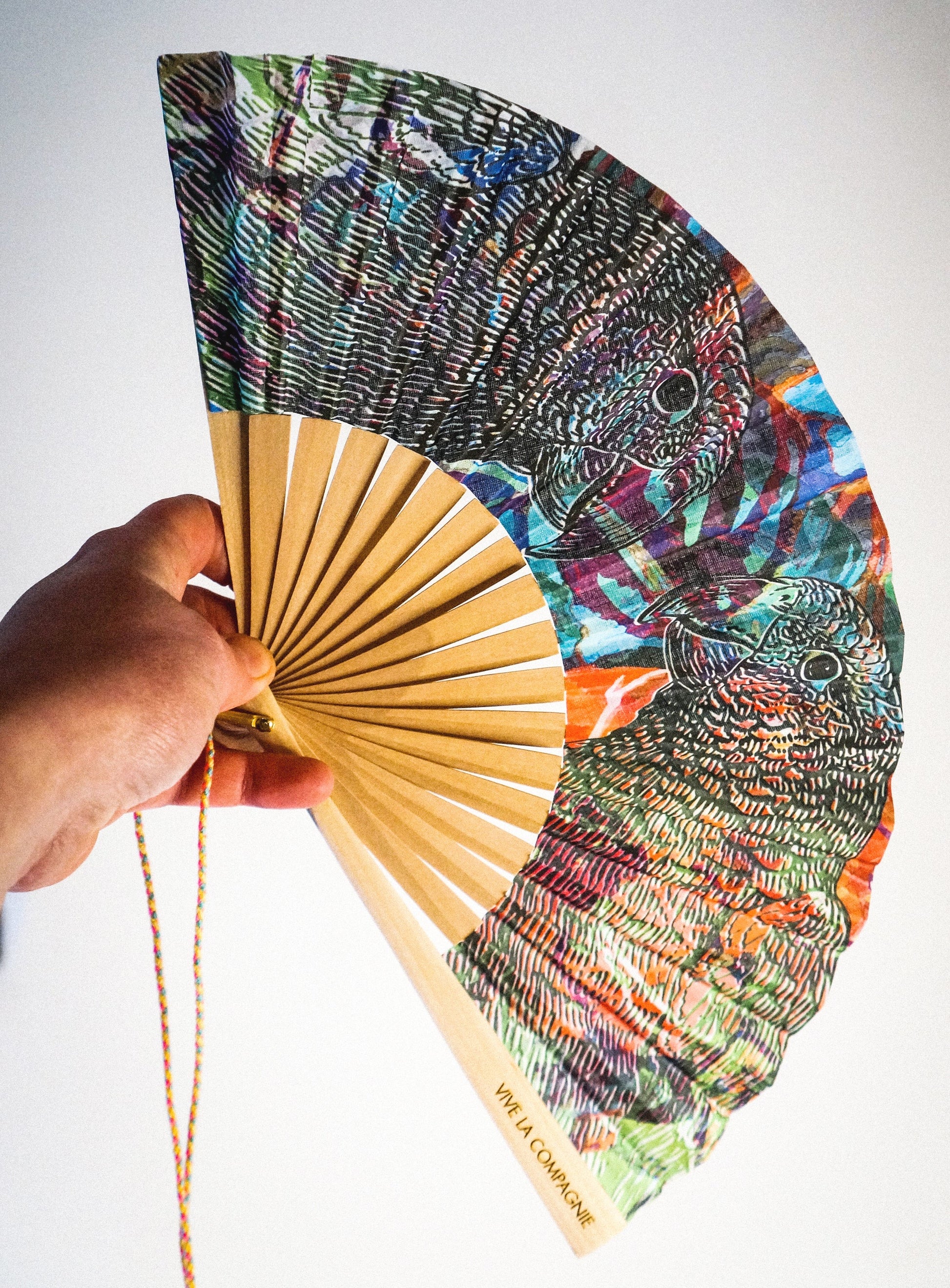 The Duet Hand Fan is small-batch manufactured in an atelier near Valencia, the Spanish birthplace of hand-fans. It is traditionally made but smaller than most. We instantly fell in love because we’ve never seen one cuter or more modern. The brightly colored parrot duo design is an in-house original.