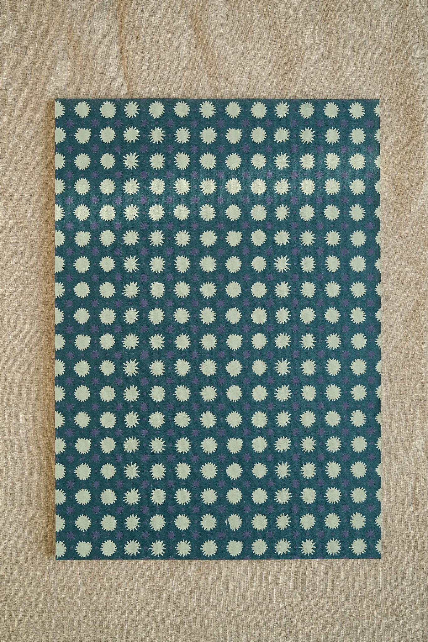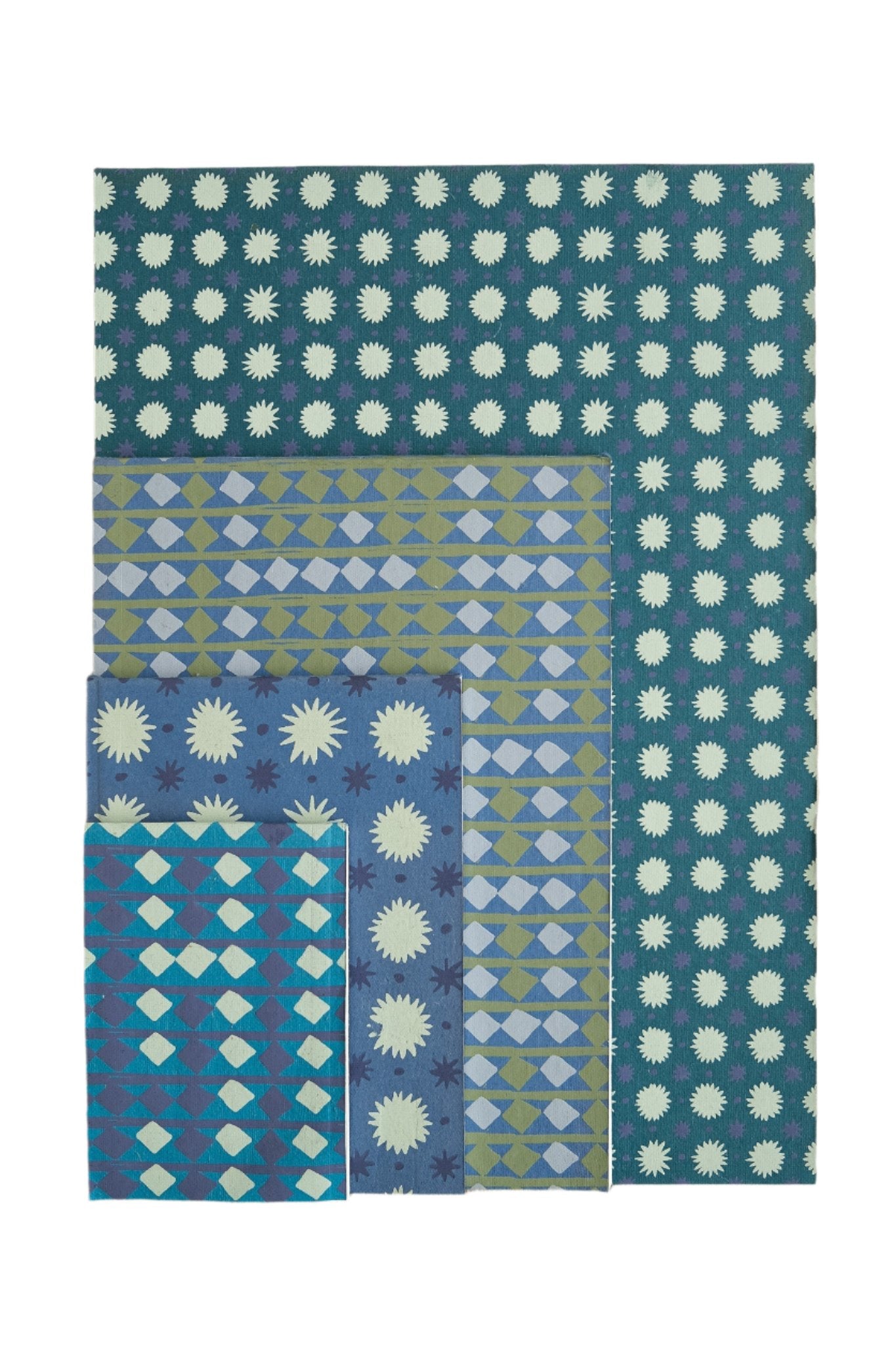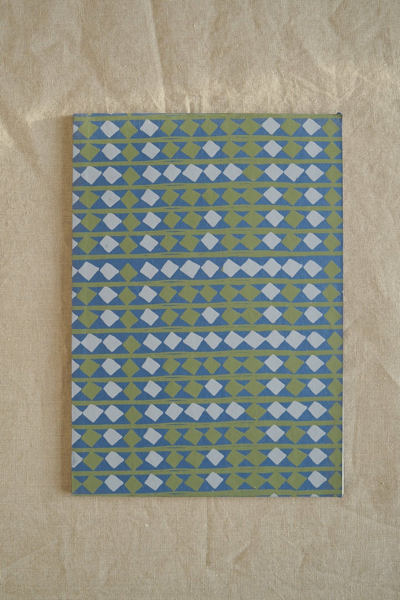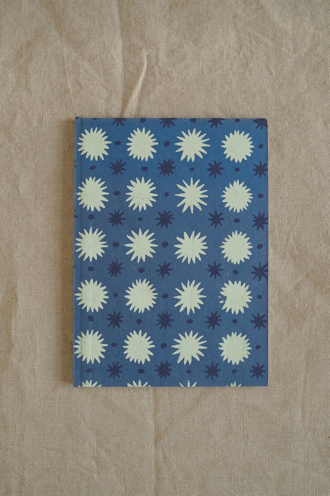 Each book has twenty pages of handmade recycled white paper. Every part of the book is composed of 120gsm 100% recycled content paper, made from pulped down cotton waste from India's textile industry. The sketchbooks have a colourful patterned cover, and vital info printed on the reverse.