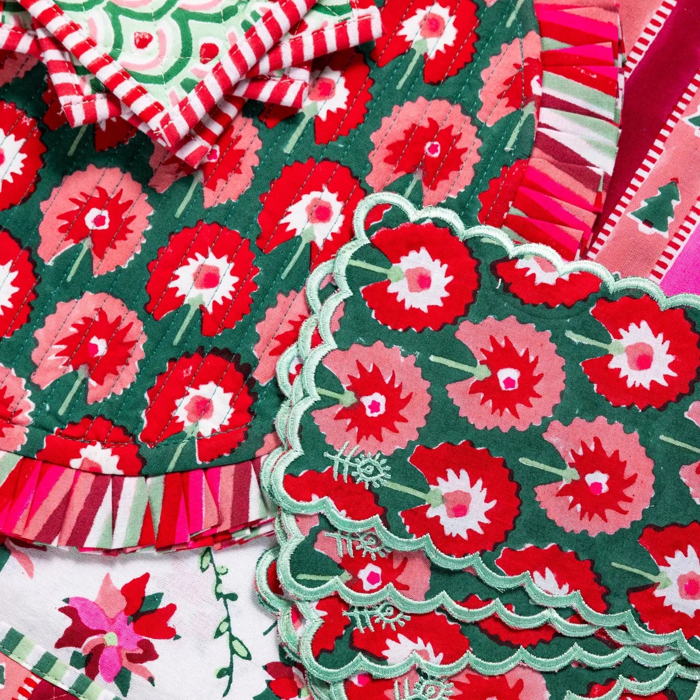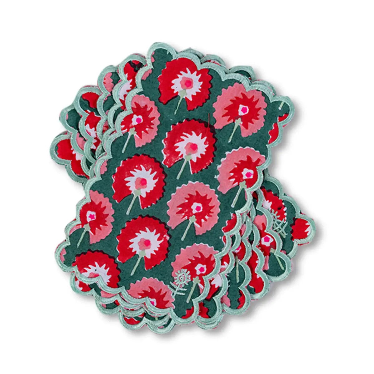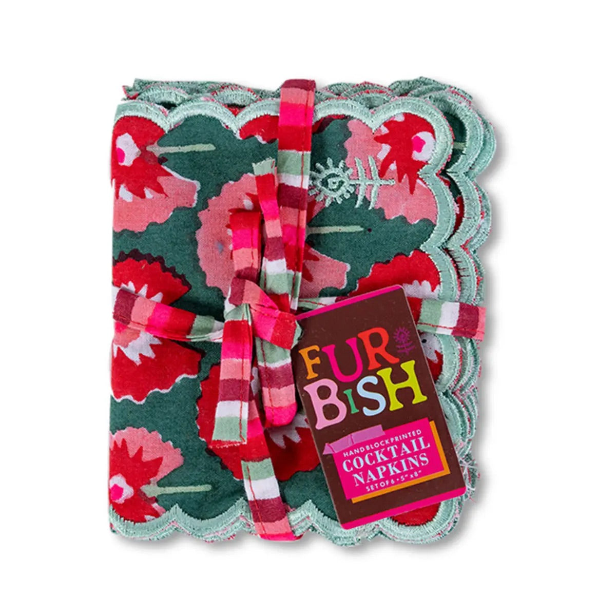 Cocktail hour gets extra festive with our exclusive blockprint cocktail napkins. Handmade in India, the charming color combo and chic striped trim make a bold statement. Add to your own bar cart or they make an excellent gift.