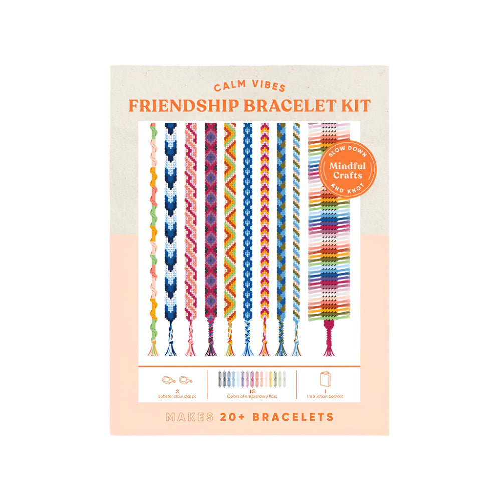 FUN TWIST ON AN OLD FAVORITE: Reminisce on those long summer days spent making friendship bracelets at school and camp. With its emphasis on mindfulness and its fresh, eye-catching designs, this how-to kit offers an elevated, more adult-friendly take on the classic craft.