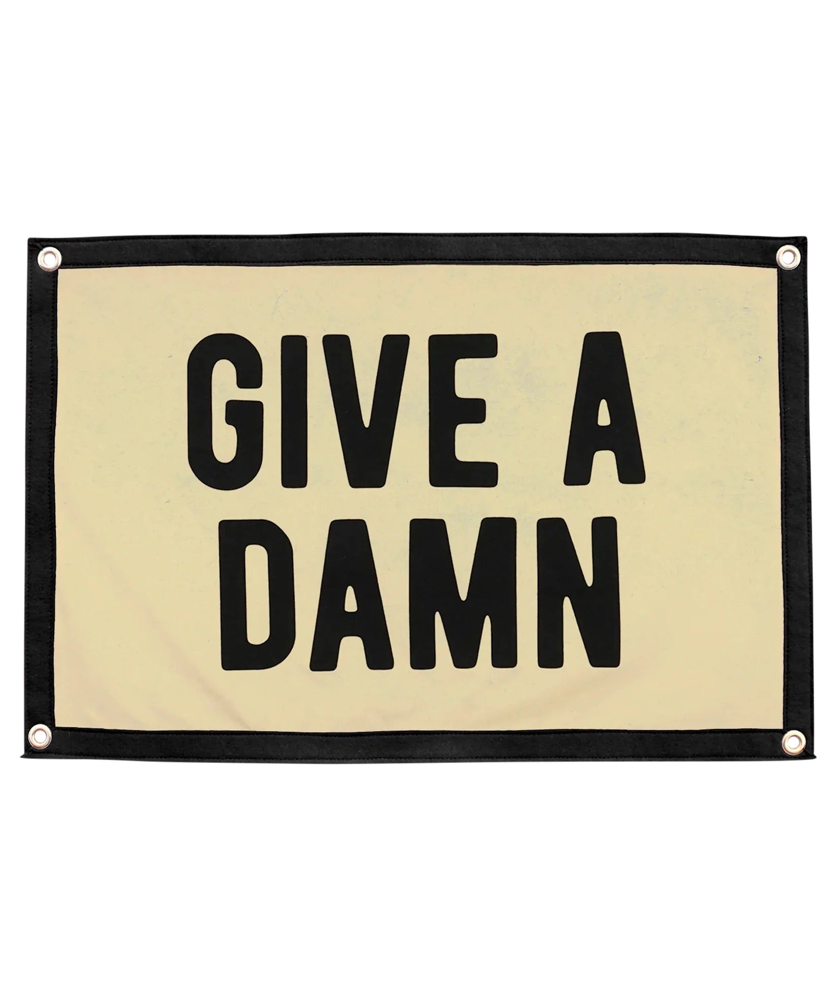 Don’t live life with an apathetic mindset. Find your passion, be kind to people, and care about the things going on in the world around you. Remind others to do the same with this cream and black camp flag.