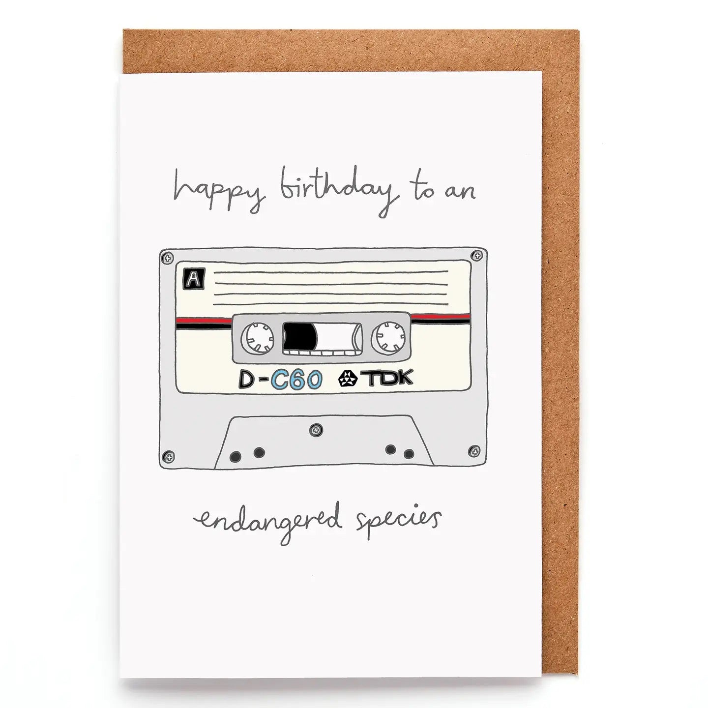 CASSETTE - Get out your boombox, it’s time for a retro birthday party! Featuring a hand-drawn cassette tape, this funny birthday card is perfect for someone who has a sense of humour about their increasing age. As much as we hate to admit that cassettes like the one on this funny birthday card are considered ‘Retro’ or even ‘Vintage’, there’s no denying that musical technology has come a long way since the little tapes dominated the scene. Size: 105mm x 150mm. Supplied with Kraft envelope.