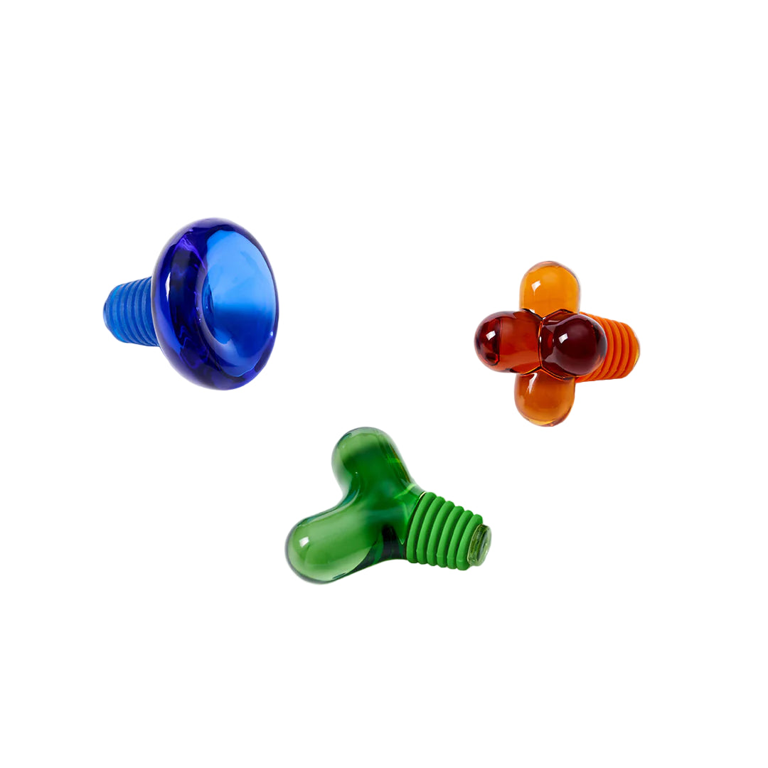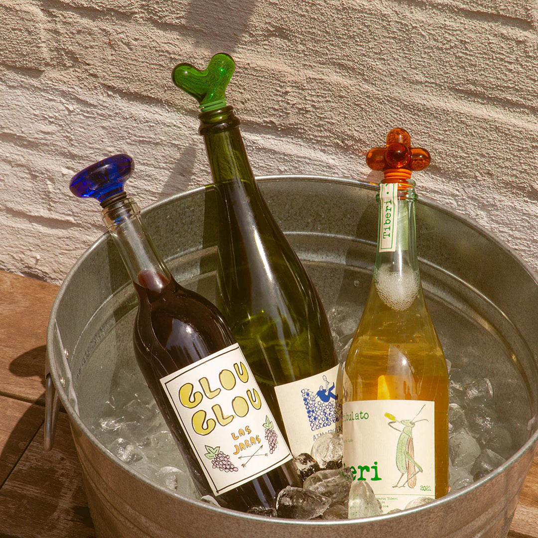 This glass bottle stopper takes its shape from the designer's line of hardware knobs while celebrating the beloved ritual of sharing a drink with friends. Hobknobbing, if you will. Pop it into an open bottle of your favorite beverage to keep it fresh and looking smart.