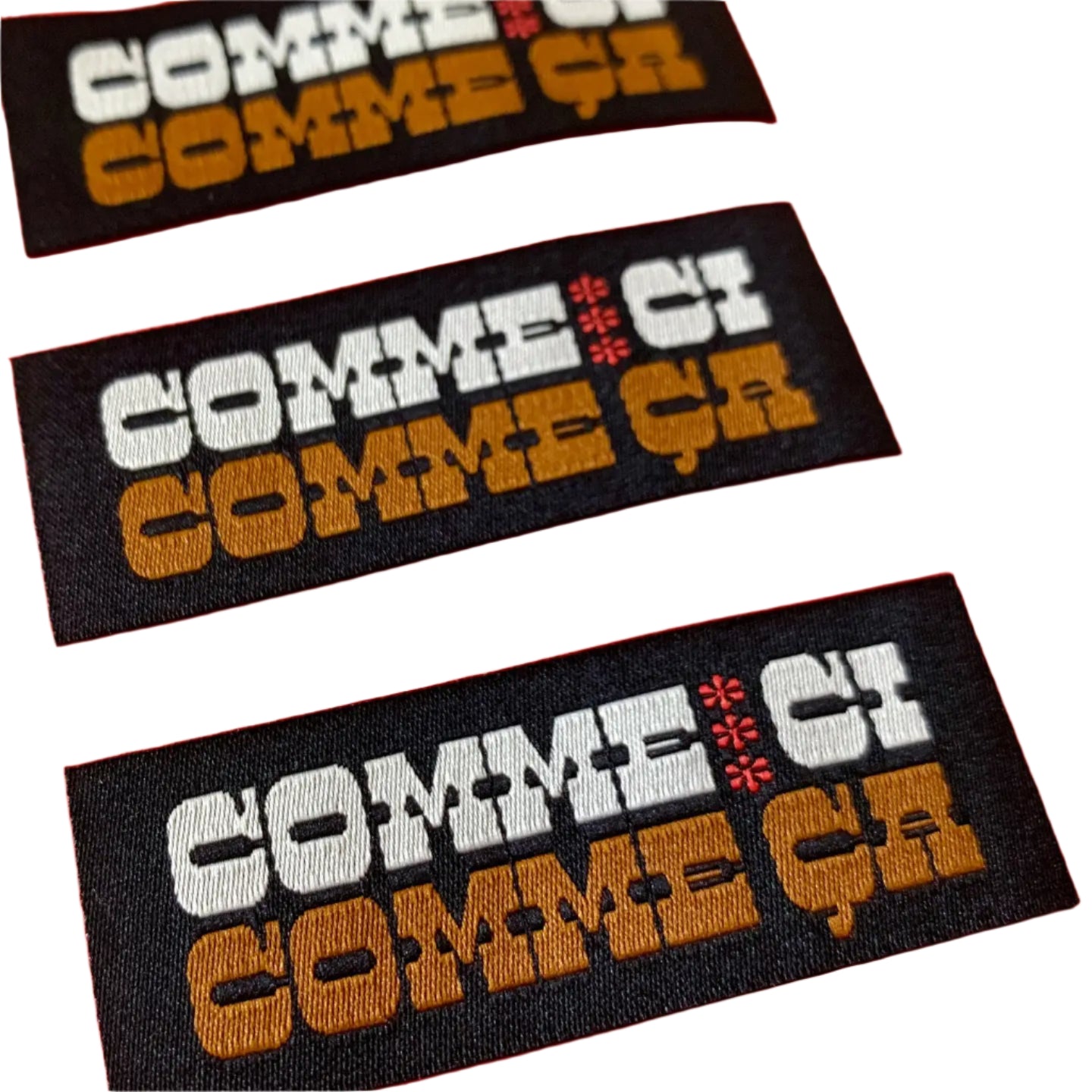 Woven iron-on patch.