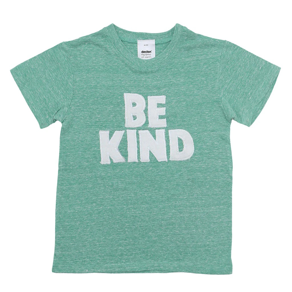 The Kids' Be Kind Tee has the best message ever conveyed on a garment. Teach your little ones the invaluable trait of kindness with this heartwarming green tee. Its clean design and beautiful shade of green make it a true bestseller that kids will love to wear. Crafted with care and using recycled materials in the yarn, this tee is not only soft and durable but also eco-conscious, making it a perfect choice for conscious parents and caregivers.