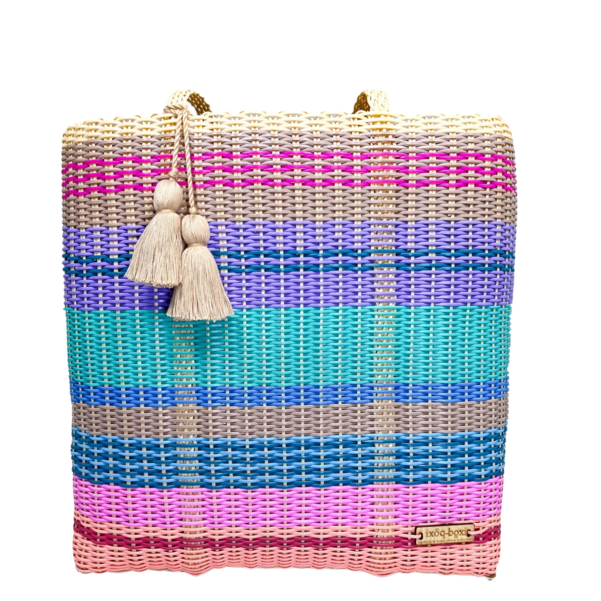 Designed by ixöq and handwoven by their partner artisans in Guatemala, using threads of recycled plastic, these ‘cesta’ totes are modeled on the traditional market bags you see throughout Latin American and come in a variety of colors and designs created for the US market. These unlined totes are equally as useful as the lined version and are perfect for the market, as a carry-on, for the office, the gym, basically anywhere that you'd like an attractive and sturdy carry-all bag. They also work well as storage in your house and perfect for magazines, towels, toys, etc... They are very durable and easy to clean and they are 100% vegan!