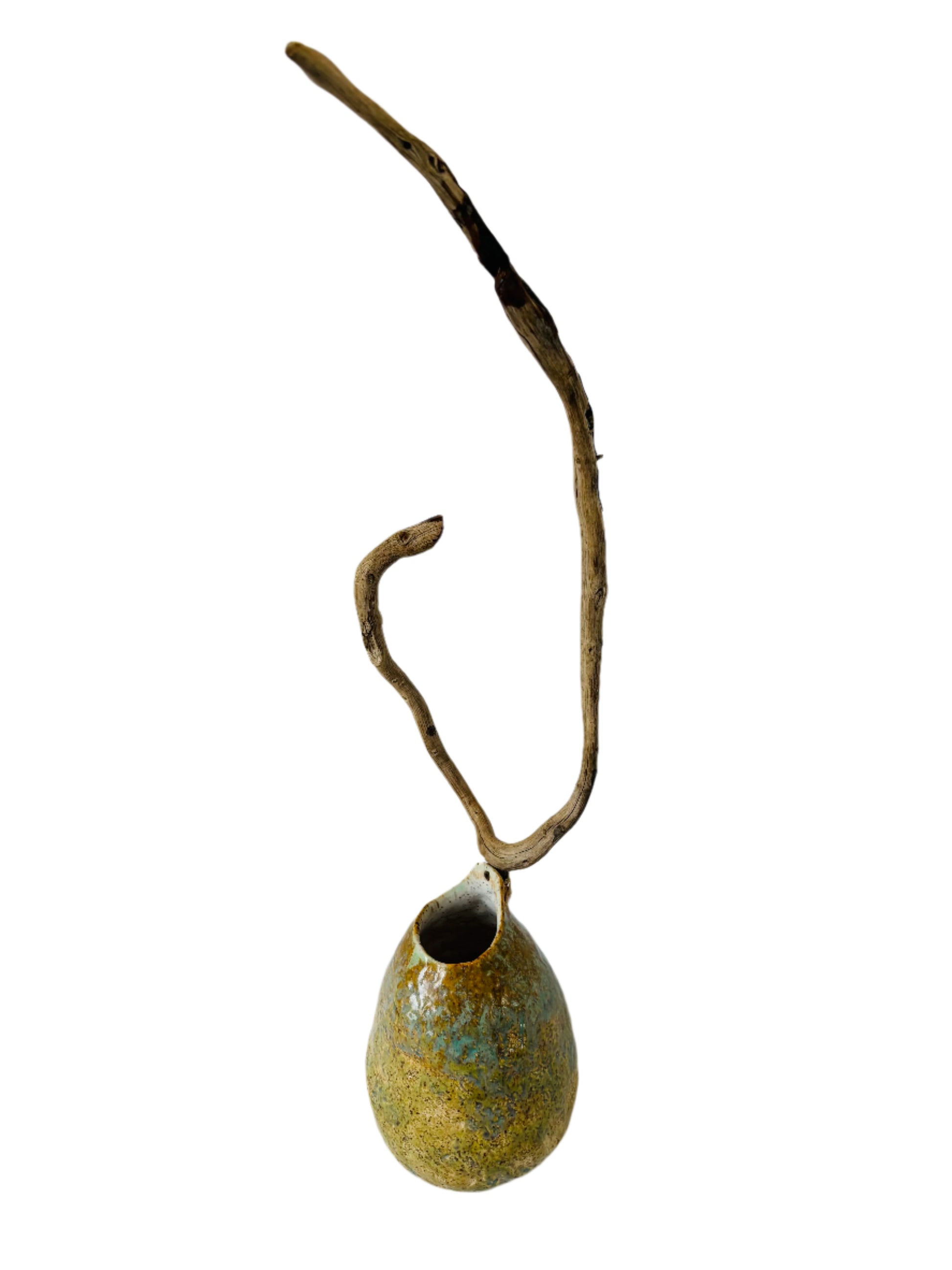 Ceramic vessels+beach driftwood & nature fragments| Ceramic sculpture| the beauty of imperfection| minimal art| Unique Clay Creations