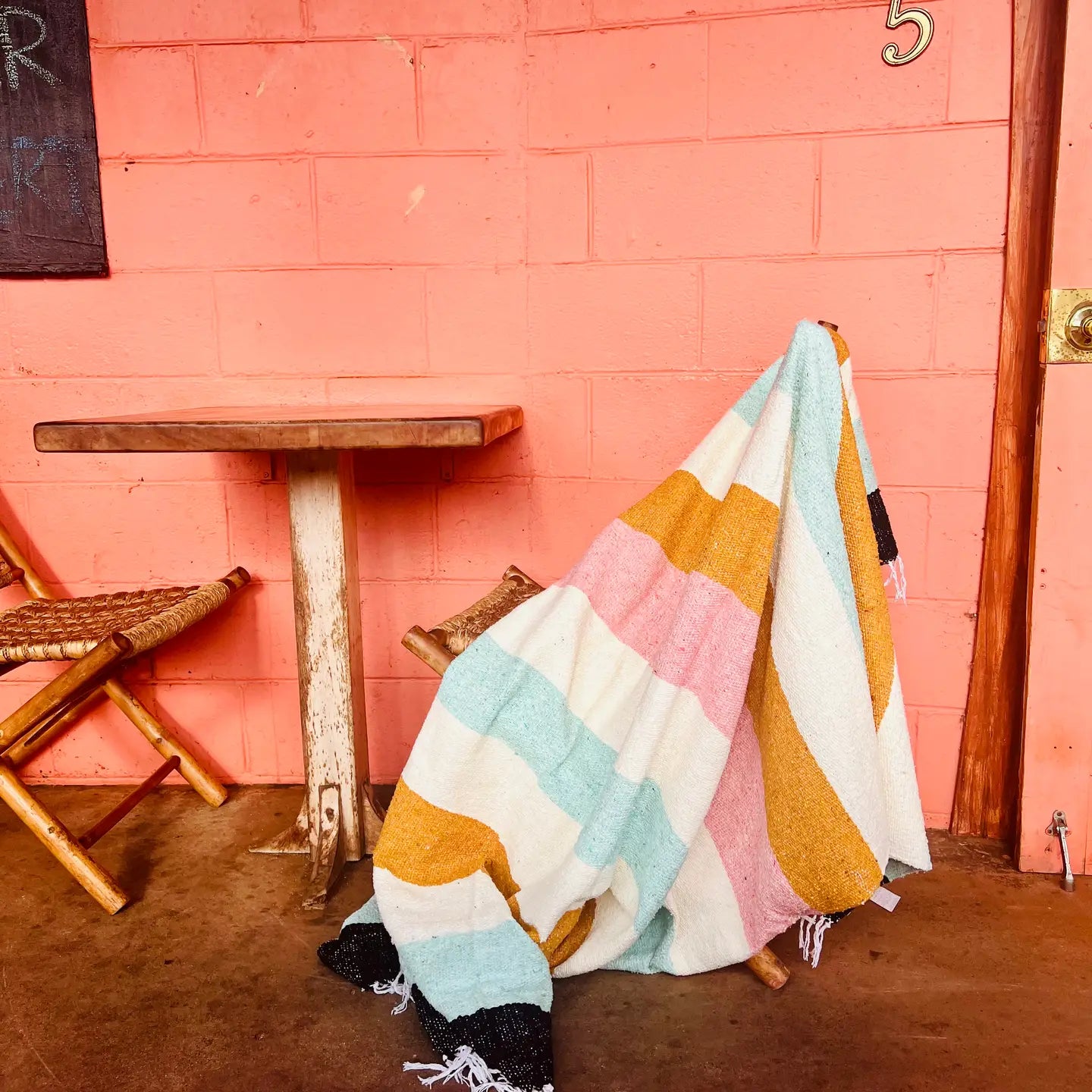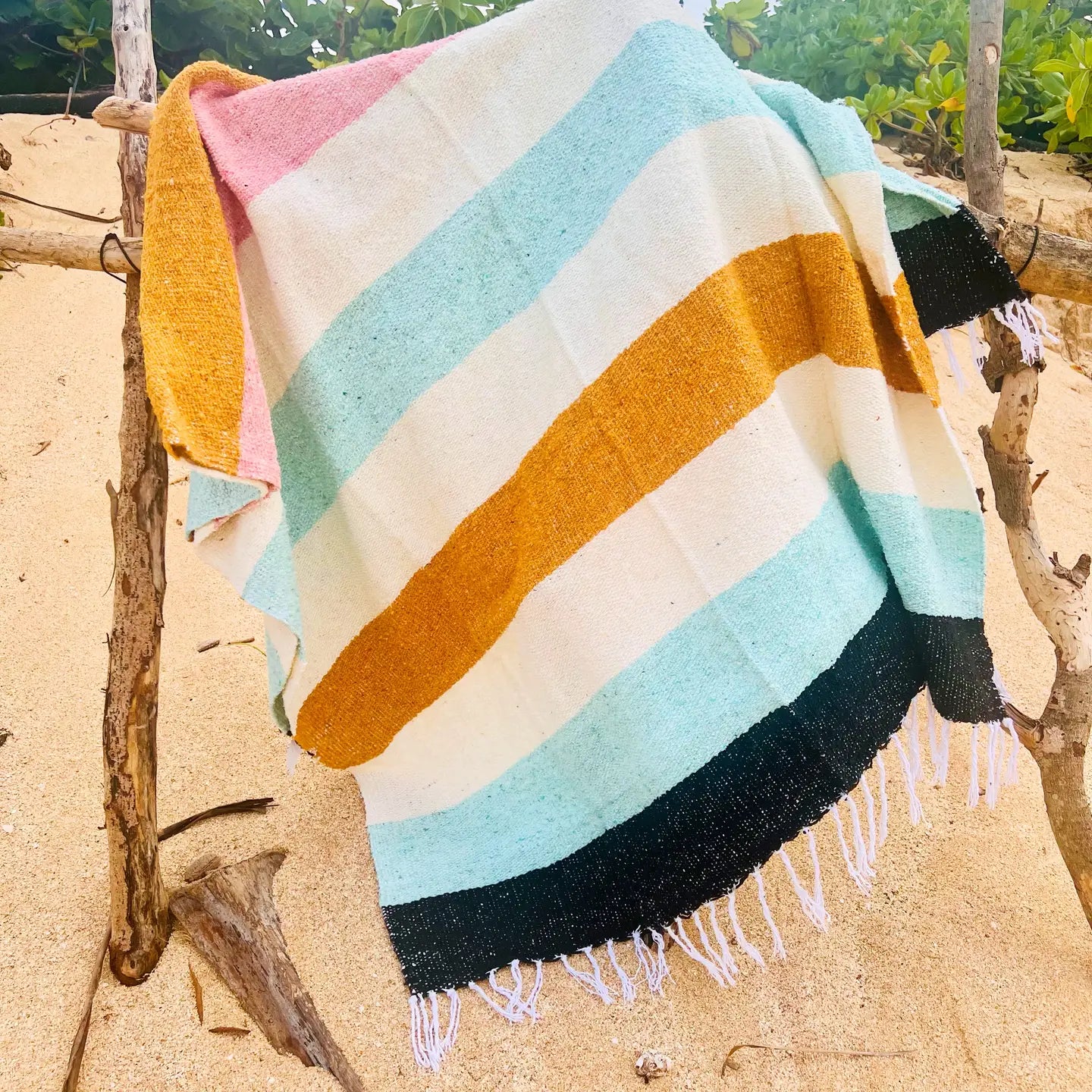 Mexican Throw Blanket in Ohana, now in a lightweight version- perfect to take to the beach!