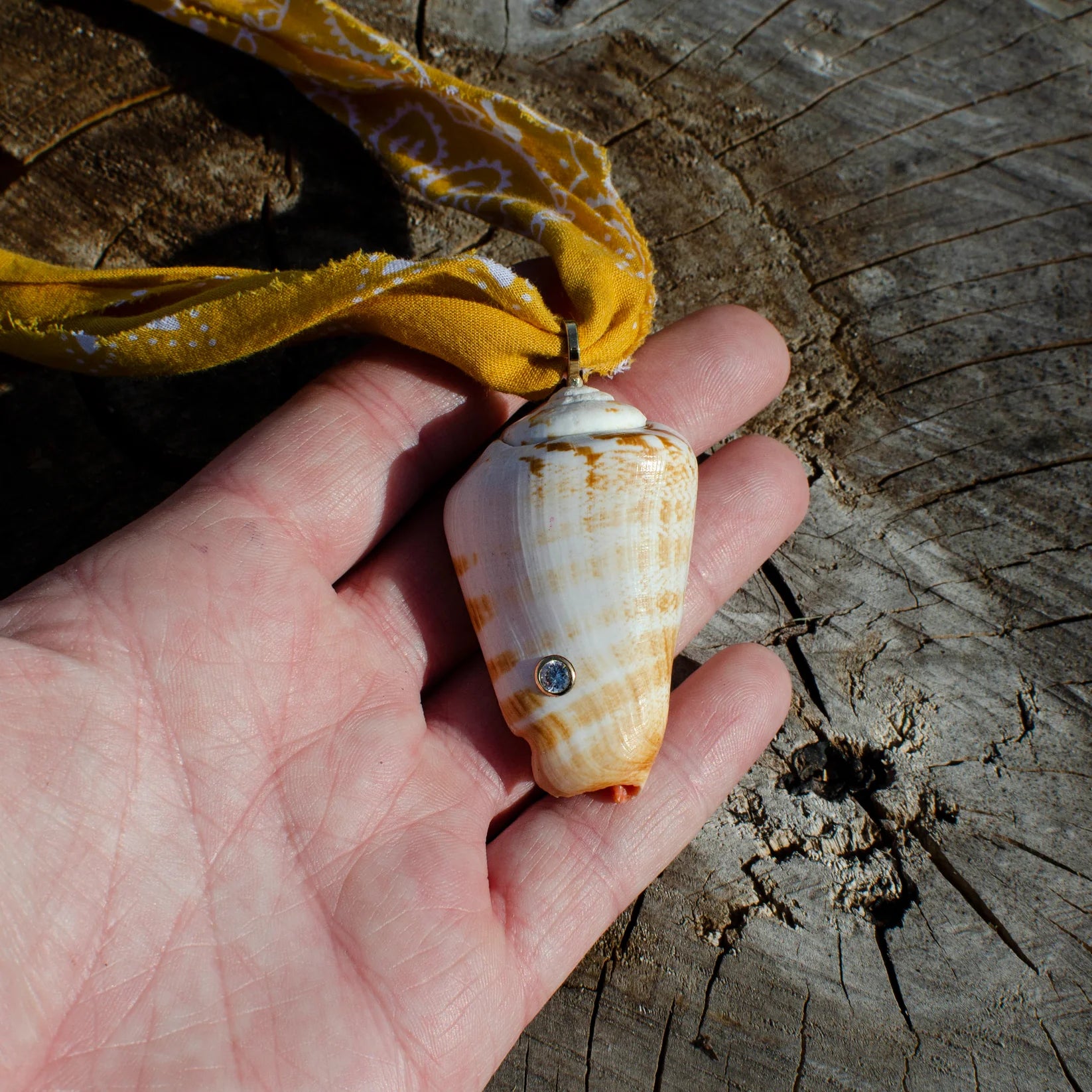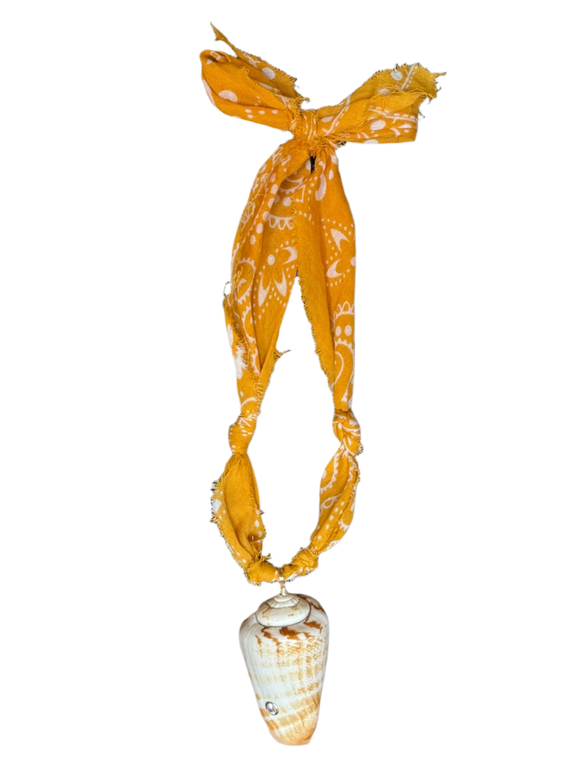 Add a splash of coastal charm to your summer look with these one-of-a-kind shell necklaces, handmade in Nashville. Each piece features a hand-drilled natural nautilus or cone shell, accented with a sparkling 4mm cubic zirconia set in a 14k gold-plated bezel. Strung on soft, colorful bandana ties for an effortless, bohemian vibe.