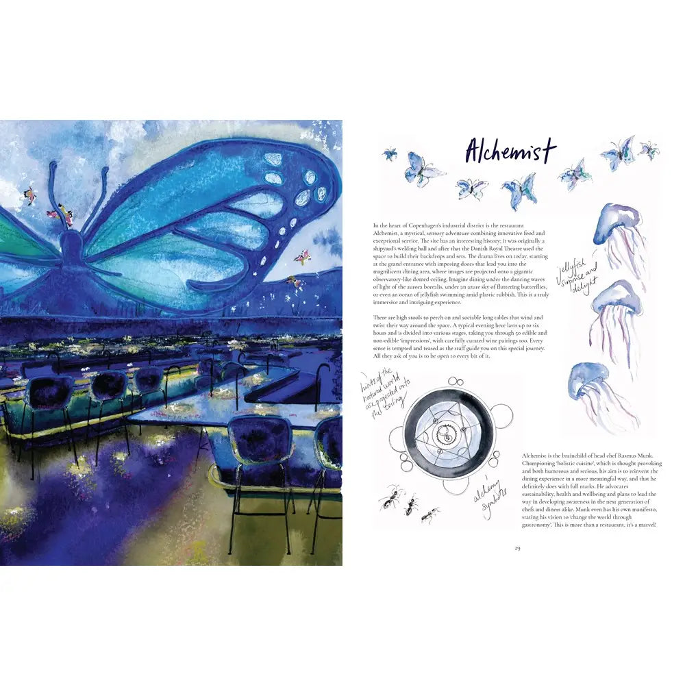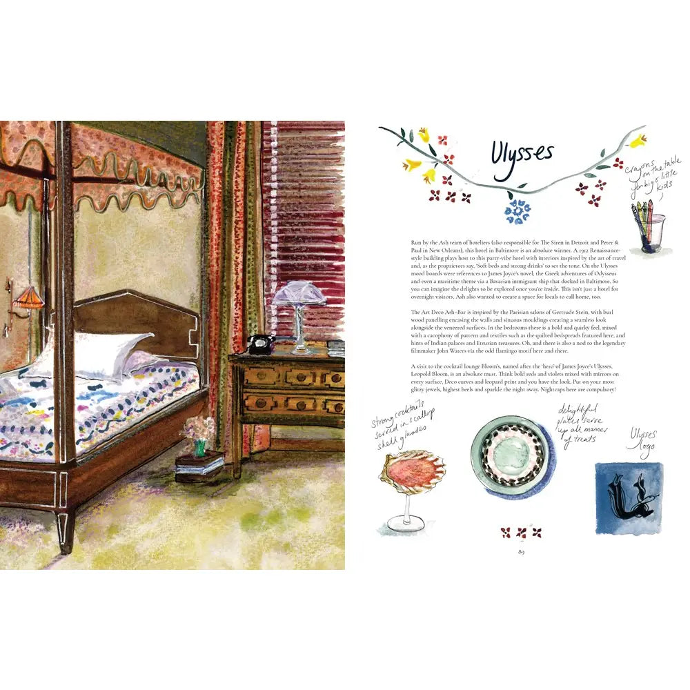 Where art meets armchair travels, this is an insider’s guide to the classic, the cool and the quirky, with locations around the world hand picked by SJ and painted in her trademark bright and detailed watercolors. All the featured places have something special, whether that’s a stunning position, centuries of history, designer interiors or a touch of good old-fashioned Jackie Collins glamour. The text offers the reader intriguing details and insider knowledge about the history and design of these locations, plus secrets and stories about the notable owners and guests. There's also the occasional cocktail recipe!