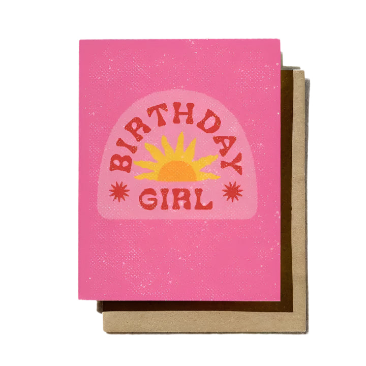 Add a pop of pink to your birthday card display with our “Birthday Girl” card – a bold, retro design featuring a rising sun and playful type in saturated summer tones. With its fun-loving energy and nostalgic vibe, this card is perfect for birthday gifting, or party-centric stores.
