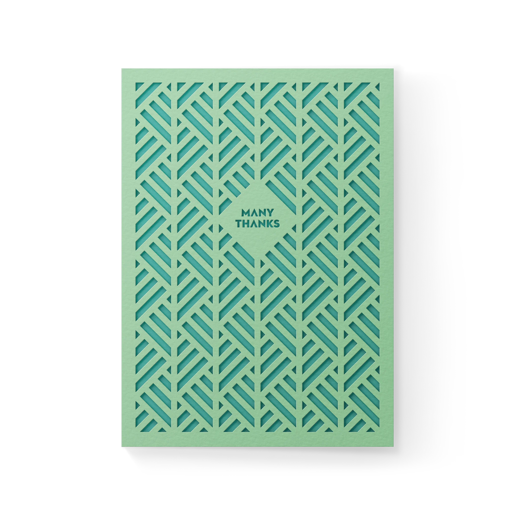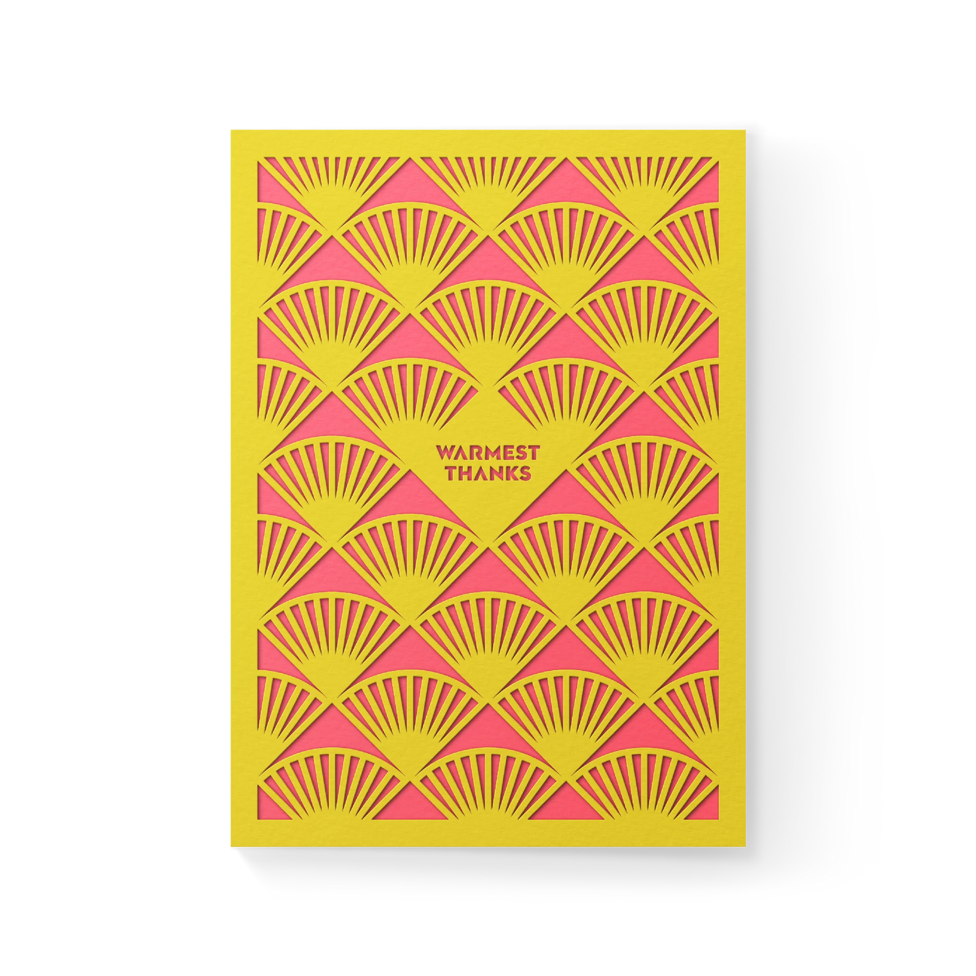 Two-piece greeting card with a laser-cut outer layer and contrasting inner layer. Write your message inside and nest layers.