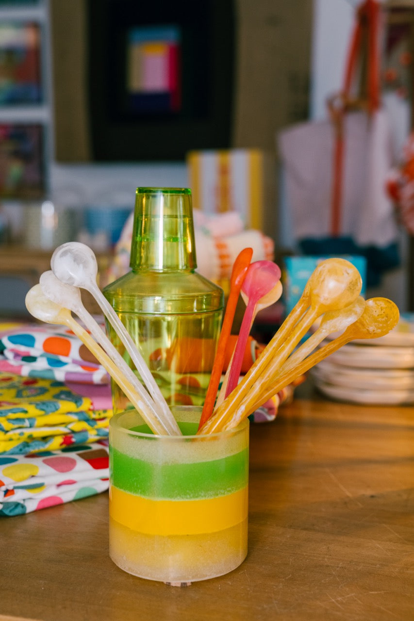 Introducing our jubilant resin cocktail spoon, a festival of color and joy right in your home. Its surface, as smooth as a serene lake, and its handle, curled like a playful smile, are designed to delight. Each spoon proudly sports a unique color on its handle, a rainbow of cheer to brighten any day. This spoon, a versatile companion, is at home in any setting, from rustic farmhouses to boho retreats, bringing a splash of fun wherever it goes. Its purpose? To assist in the art of mixing, stirring, and sipping cocktails, mocktails, coffee, tea, or your beverage of choice. You can find this vibrant accessory enhancing the ambiance of kitchens, bars, living rooms, or patios, measuring a handy 8.25 inches in length.