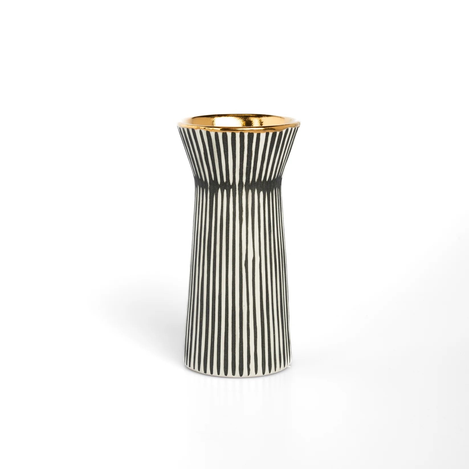 Perfect for fresh cut flowers, our ribbed vase has a peek a book of 22k gold on the rim and partially inside. It gives your flowers an extra special something something