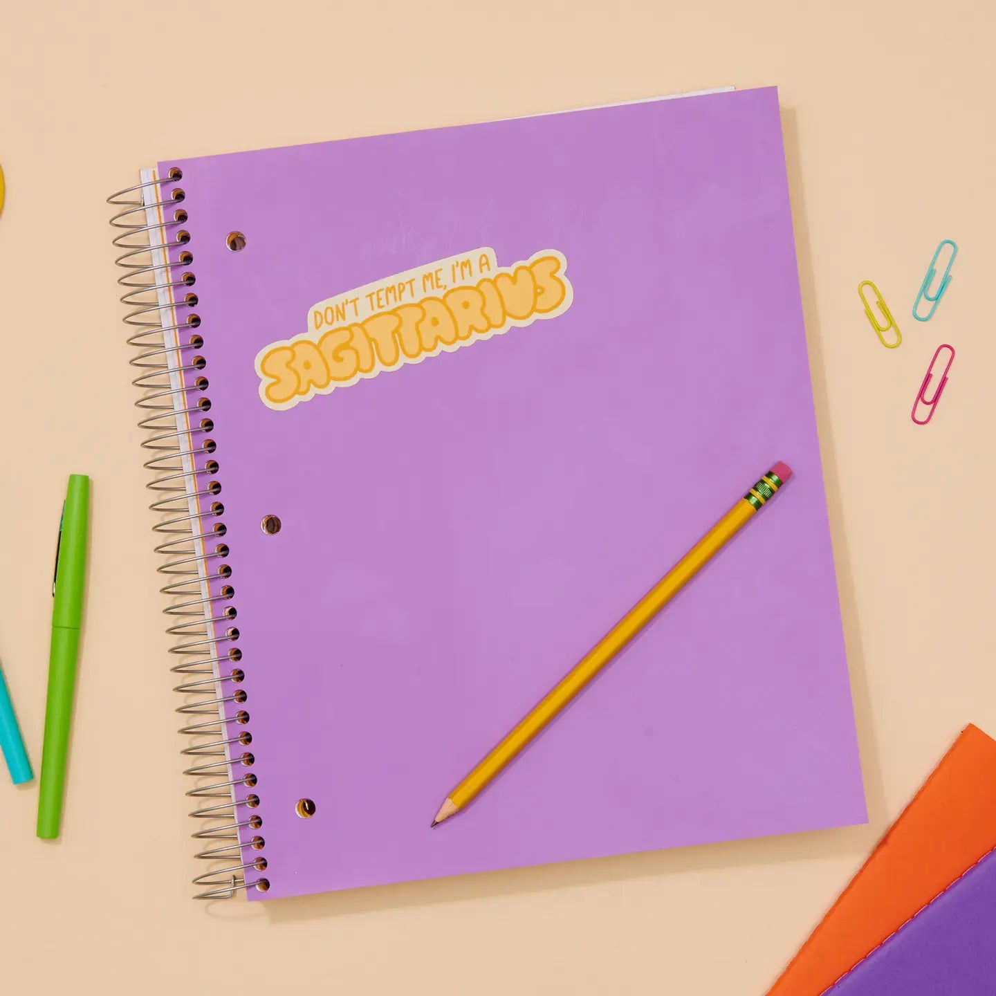 • Sticker reads, "Don't tempt me, I'm a Sagittarius"