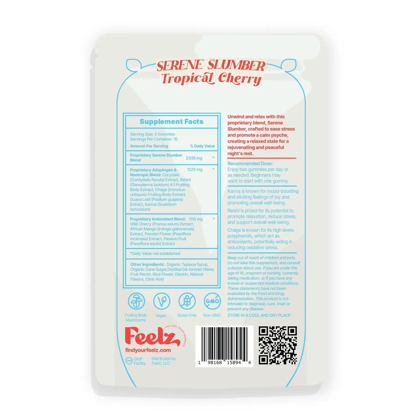 Gluten-Free, Vegan, Fruiting Body Mushrooms, Manufactured in a CGMP Facility, 3rd Party Lab Tested.