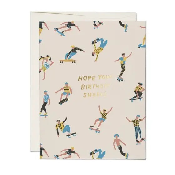 Blank inside. 100lb heavyweight card stock. Offset printed and foil stamped. 4.25 x 5.5 inches. Illustrated by Danielle Kroll. Printed by Red Cap Cards in Los Angeles, California, USA, on recycled paper.