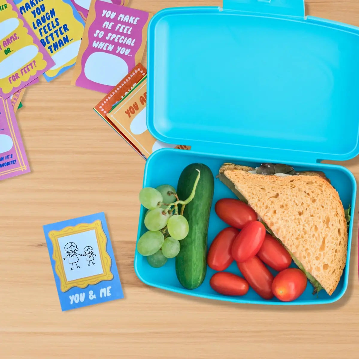 This cute little box contains 40 different colorful, prompted cards to create silly notes, coupons or drawings for your kiddos, on even the most hectic mornings. Perfect to stick in a lunchbox or backpack!