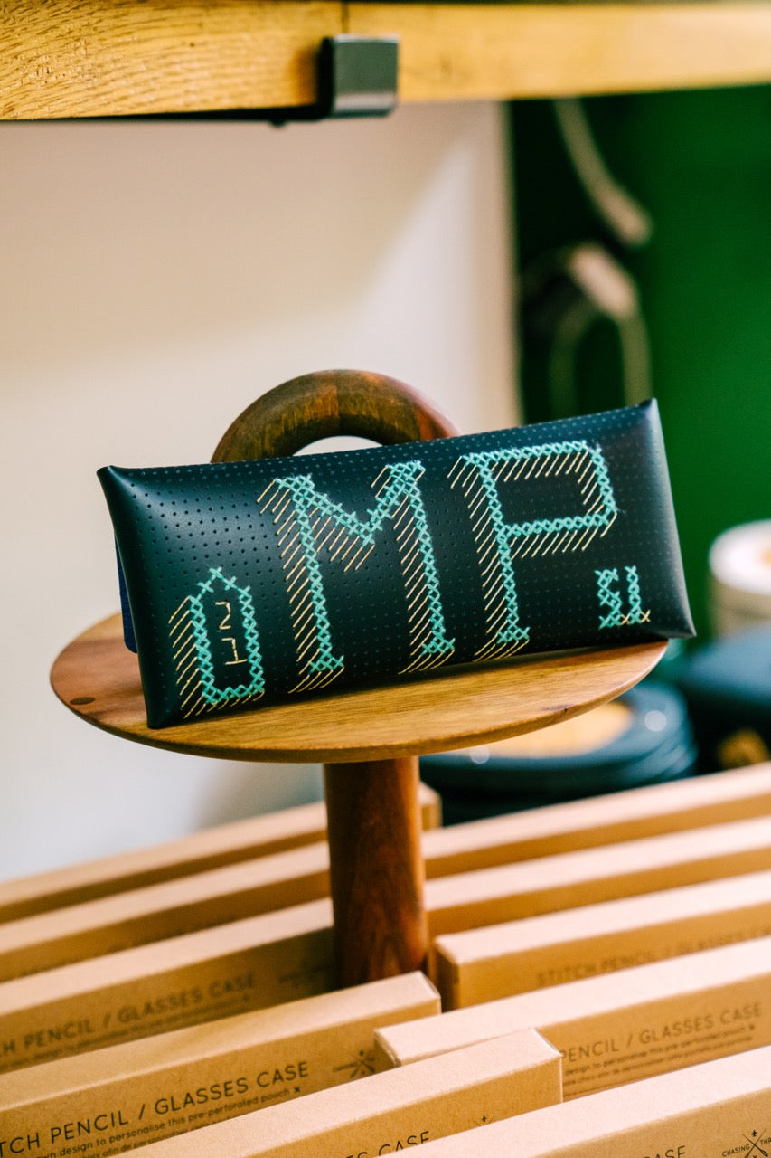 - The mint pouch comes with teal & navy thread & needle wrapped on our pen thread-board.