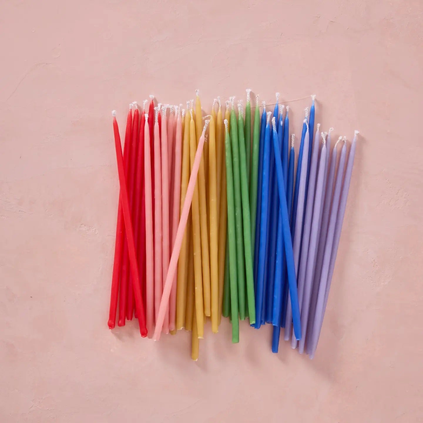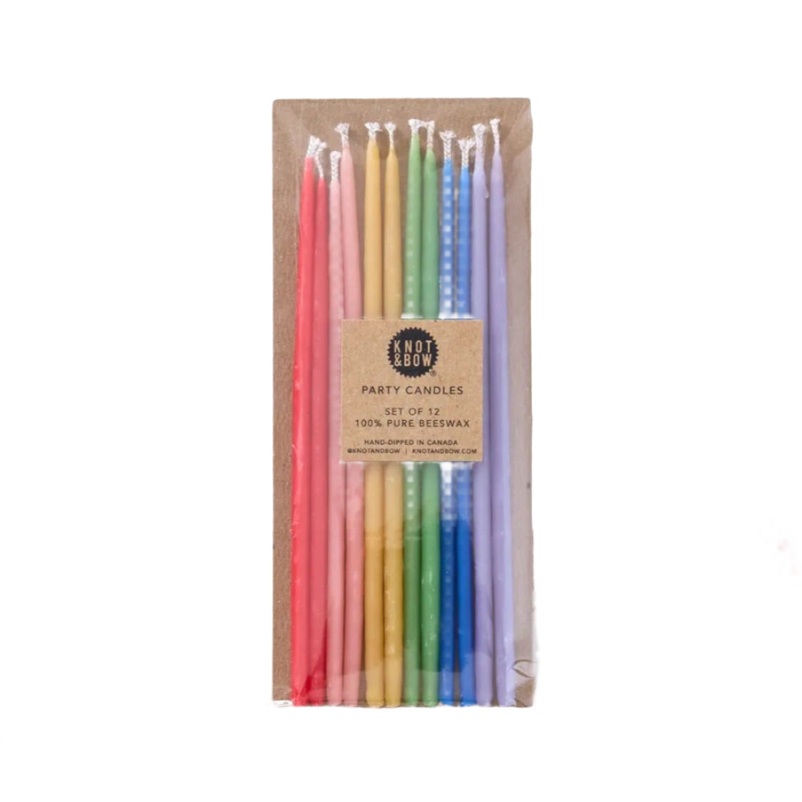 These unique 100% pure beeswax birthday candles are hand-dipped and have a light natural beeswax scent. Details: 12 pure beeswax candles, 6" tall, Burn time of 30 minutes, Hand-dipped in Canada, Assembled with love in Brooklyn.