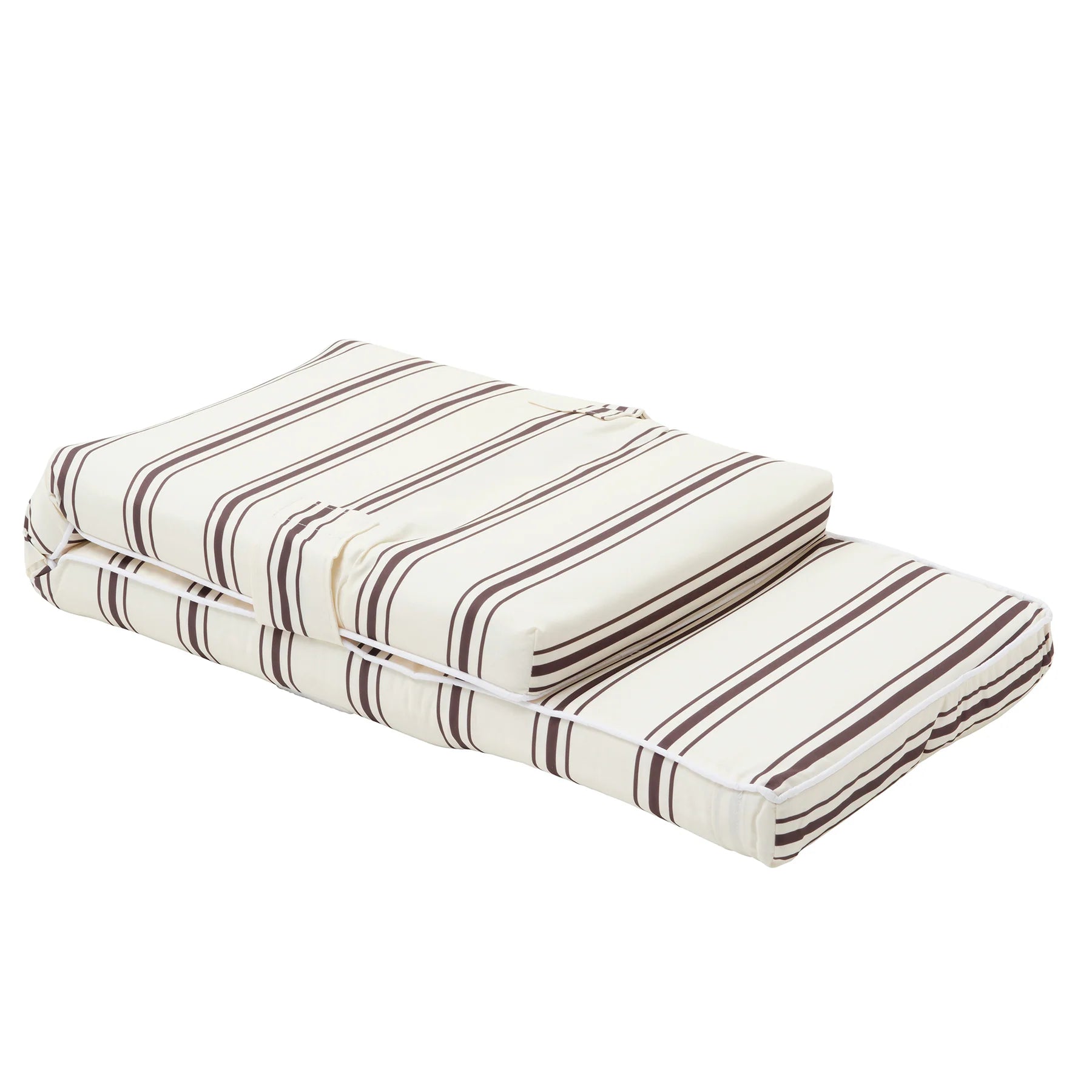 While our loungers are designed to be enjoyed both indoors and outdoors, they are portable rather than permanent outdoor furniture so should be stored in their bag out of the weather when not in use which will prevent rust and fading.