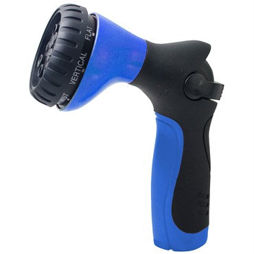 Stress-free watering nozzle. Designed with a sliding thumb control valve for ease of use. The 8 adjustable spray patterns include: shower, center, cone, stream, mist, vertical, flat, and full. Made with durable metal construction.