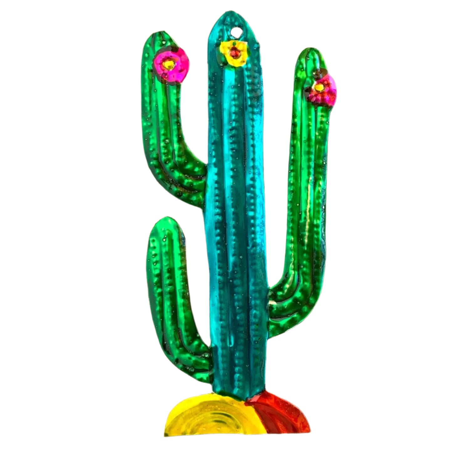 Hand painted tin saguaro cactus from Oaxaca, Mexico. Painting may vary.