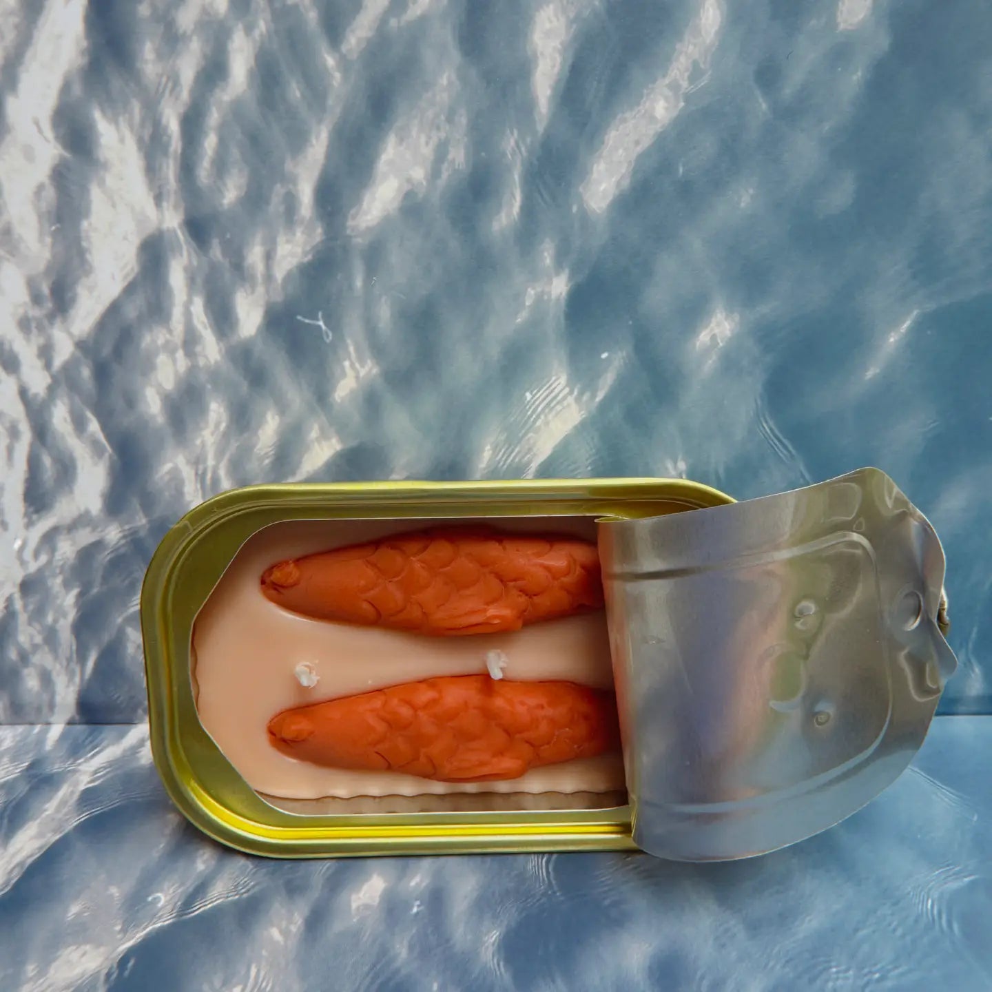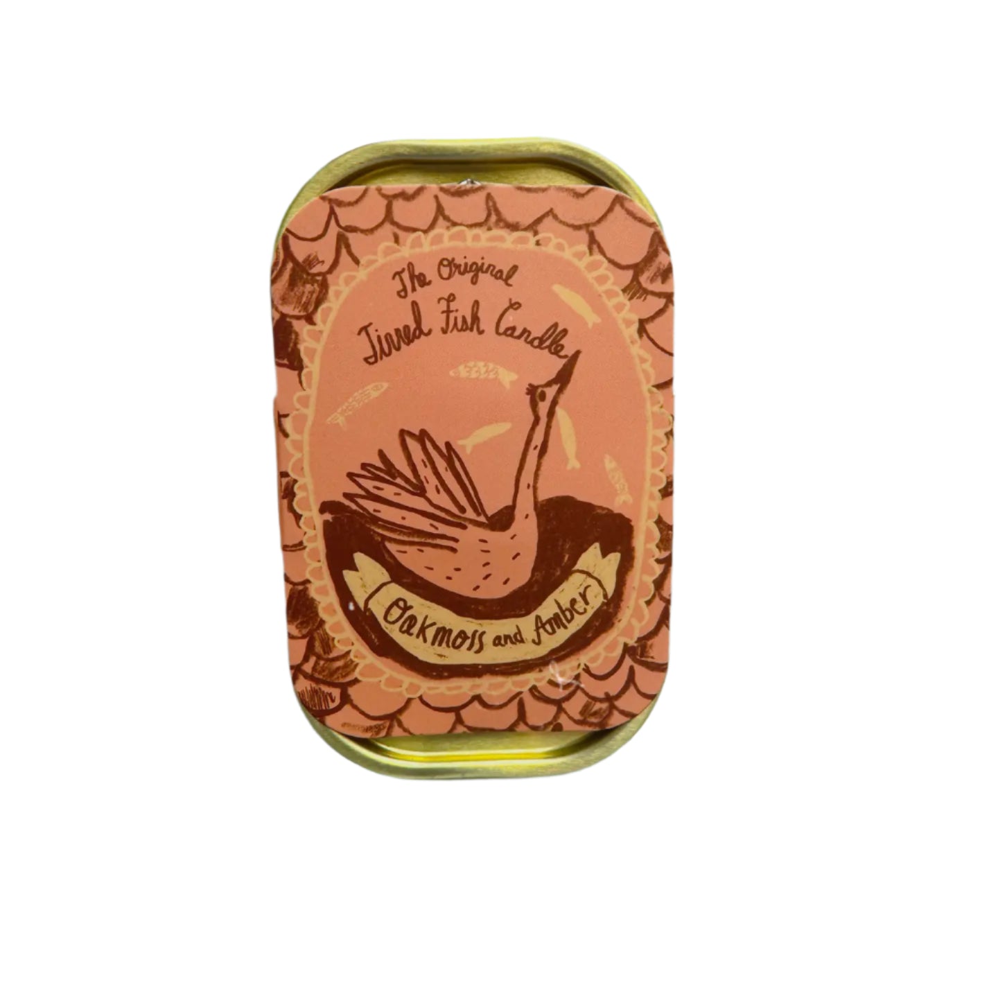 Earthy, elegant, and a little bit cheeky. This candle blends oakmoss and amber with a soft coral-toned scene of fish packed neatly inside. Part art piece, part scent experience, it opens just like a tin of sardines—only way cuter.
