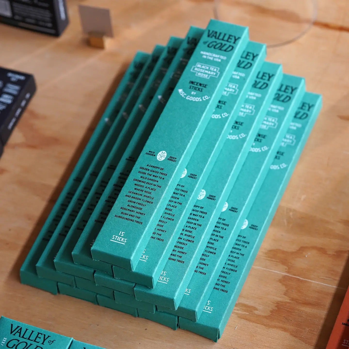 Bring the fresh earthy scent of Valley of Gold, our much-beloved, premium fragrance to your home and your own daily rhythm with our new incense.