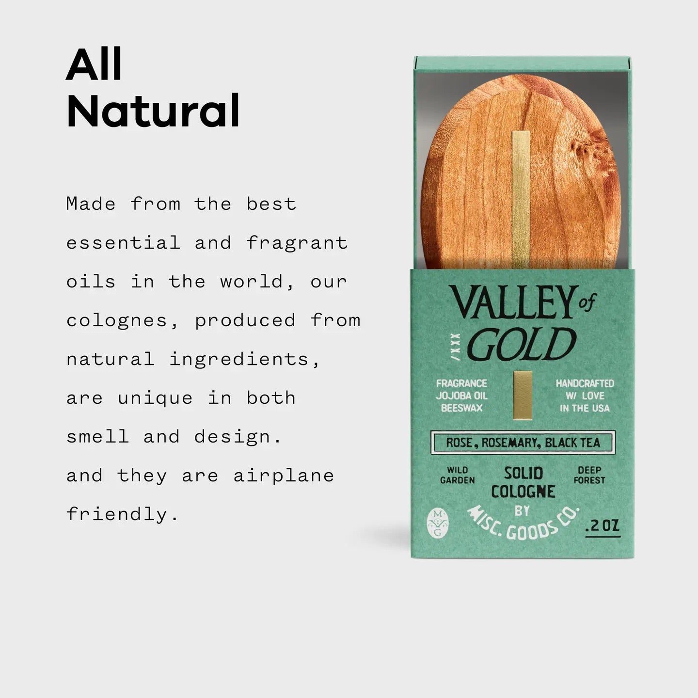 NATURE'S NATURAL FRAGRANCE BLEND: Immerse yourself with our unique and meticulously crafted earthy scents Misc. Goods Co. Our Valley of Gold cologne for women and men resonates with the earth's harmonious Symphony through its unique notes. A stroll through the overgrown space between mountains in spring—a true testament to our passion for the earth's enchanting perfumes.