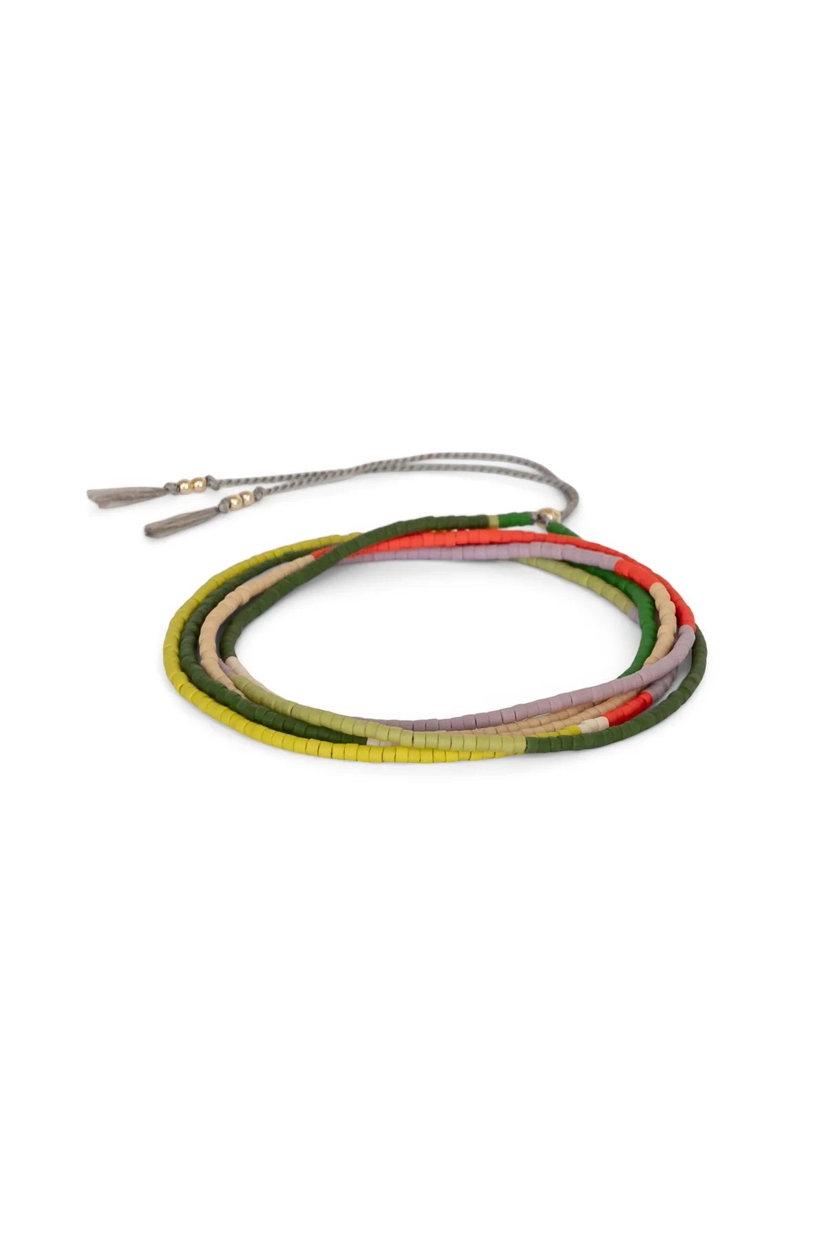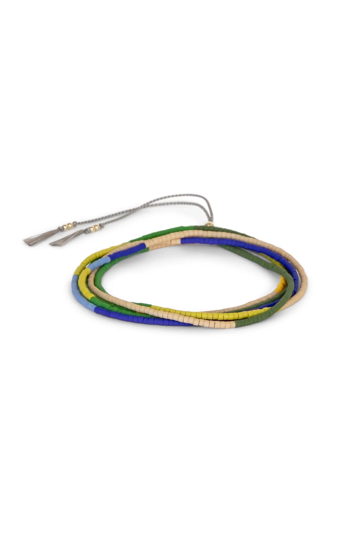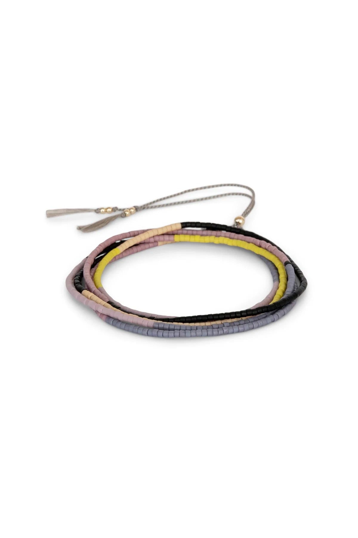 The Voyage wrap features each respective color palette in full and with balanced proportions. Their beloved wraps can be worn as a necklace or wrapped as a bracelet.