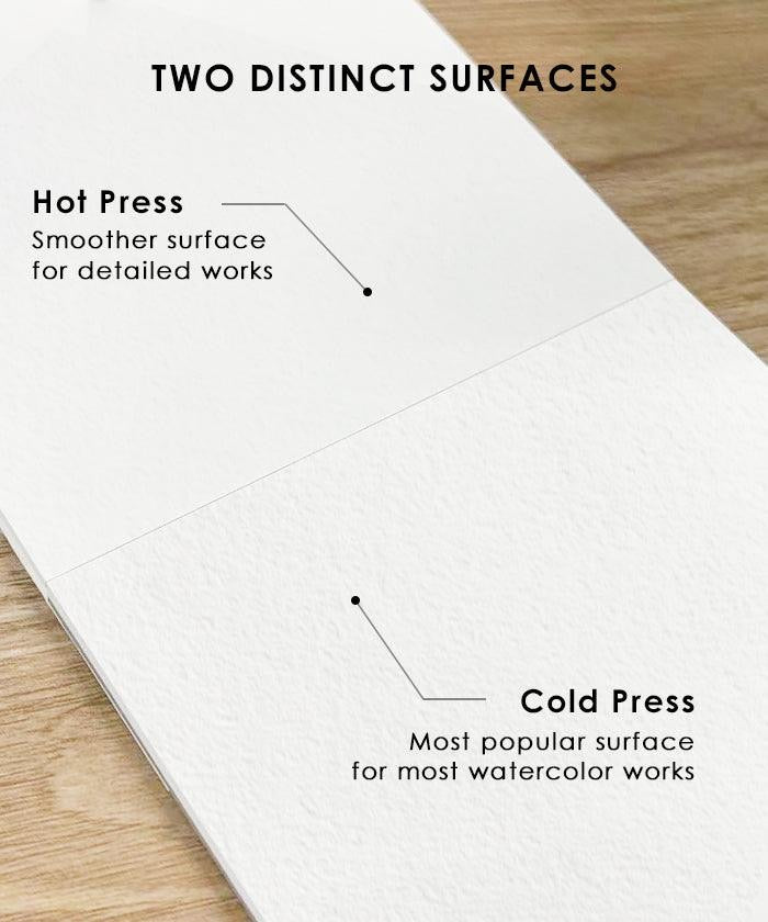 This 140 lb. acid-free, heavy-weight watercolor paper is made to stand up to the various watercolor media! Grabie specially designed two different surfaces that adapt beautifully to a variety of techniques: One side is cold press the most popular surface for most watercolor work, while the other side is hot press, which is smoother and ideal for detailed work.