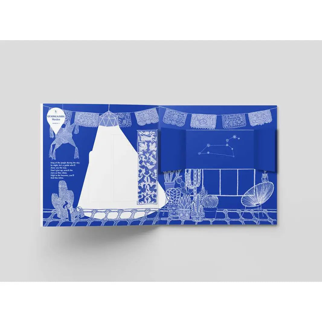 This enchanting book invites readers to imagine themselves gazing at the night sky from different children’s rooms around the world. Hold the windows on each page up to a light source, and constellations magically appear- celestial creatures that roam the sky before dawn.