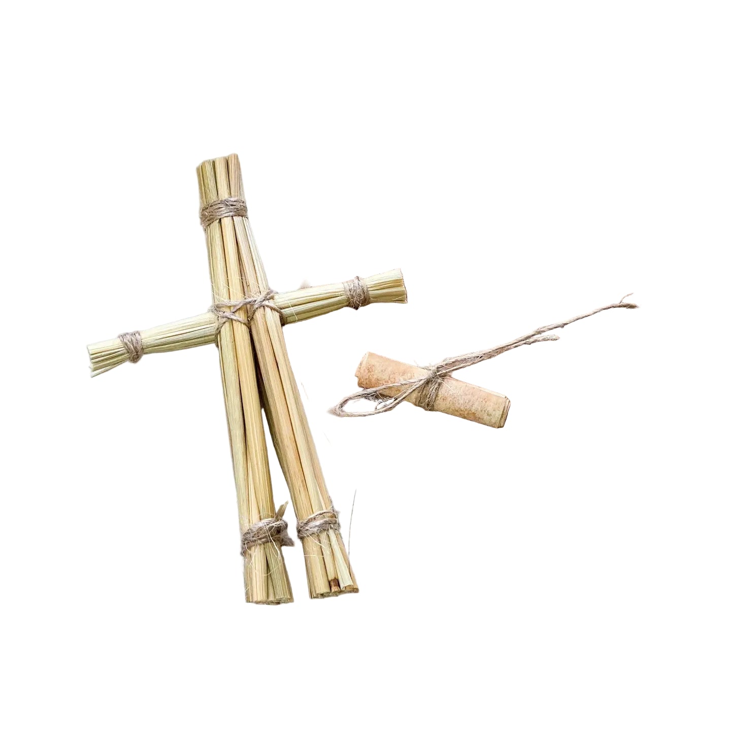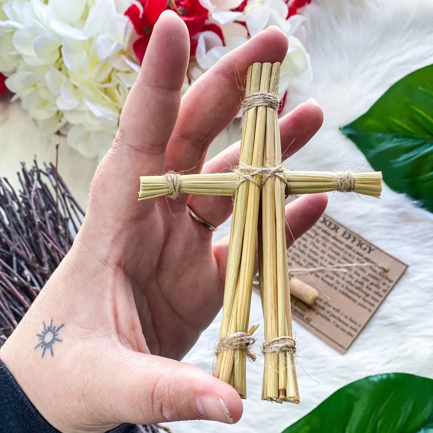 These effigies measures about 4-5" tall & are made with natural wheat straw & twine. Each one comes in a small cellophane wrap with a small scroll of parchment paper wrapped in twine & an information card.