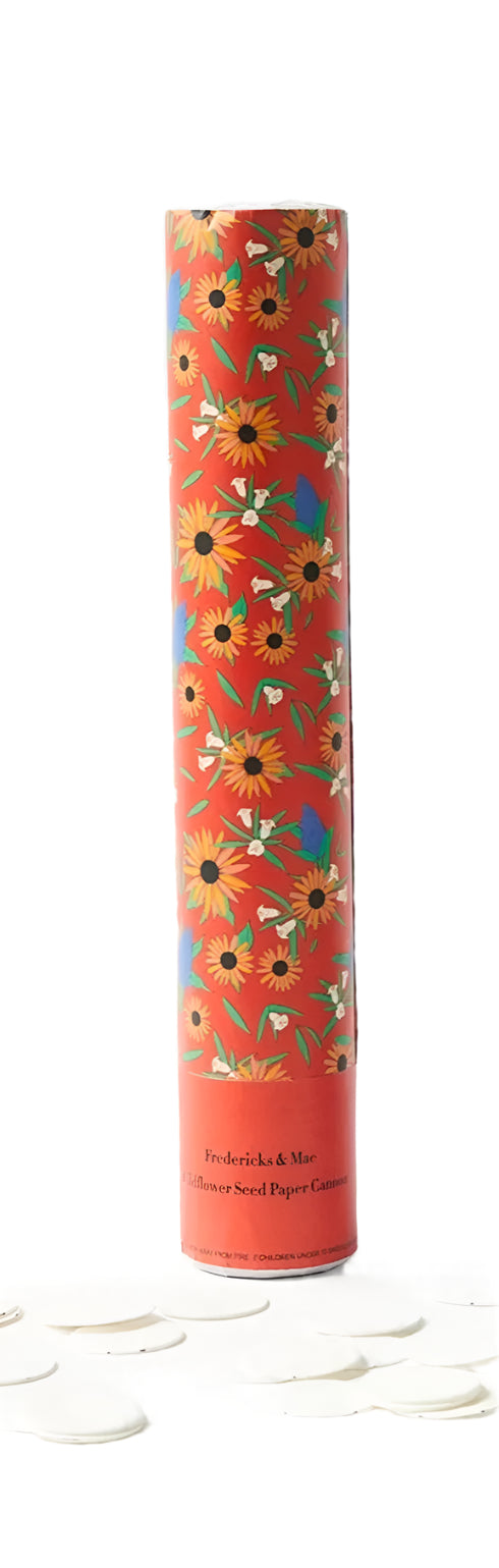 Confetti embedded with wildflower seeds - a compressed air canister makes a rather loud pop as these explode with future blooms.