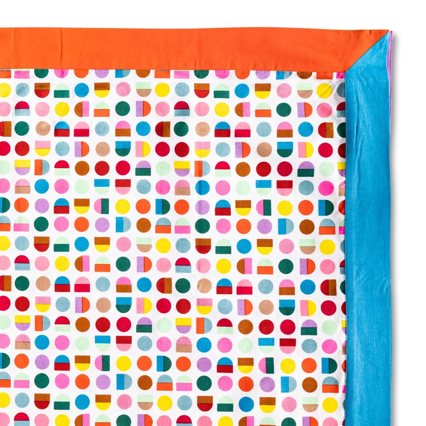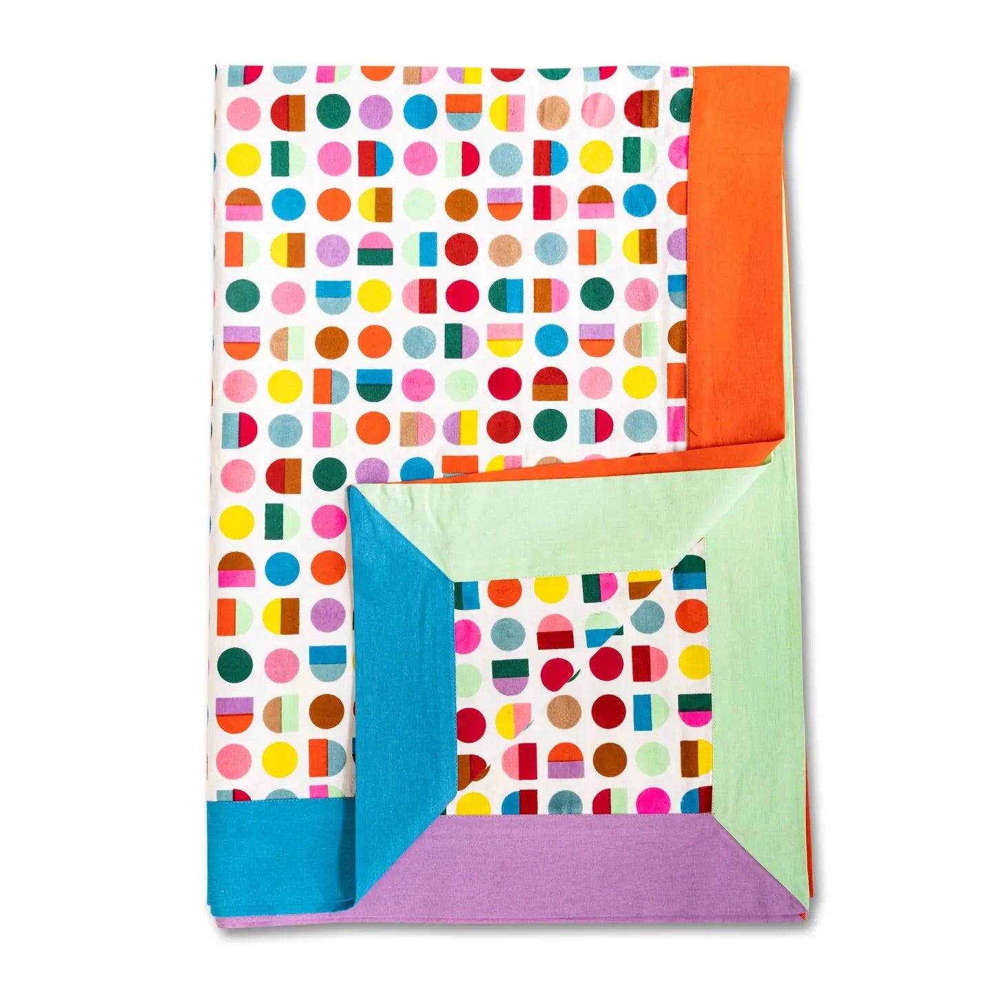 Make your meals extra festive with our exclusive blockprint rectangle tablecloth. Handmade in India, the charming color combo and the striped trim make a bold statement. By opting for sustainable table linens over disposable, we can help cut down on waste and support an age-old craft by artisans in Jaipur.